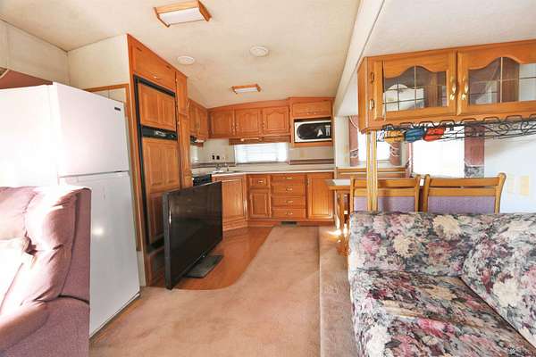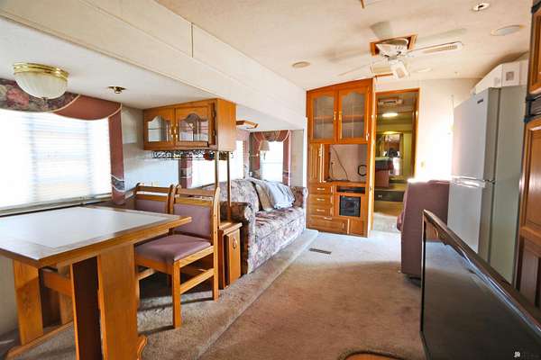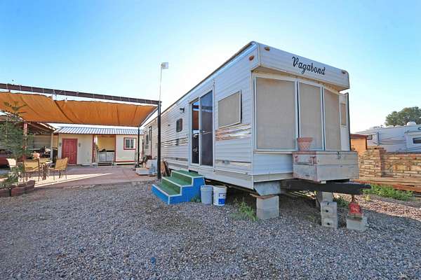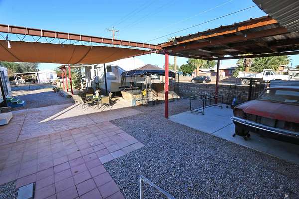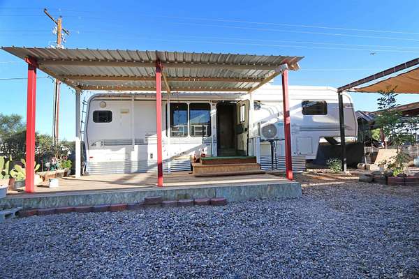 Est $930/moGreat corner lot located in a cul-de-sac with plenty of shade and an excellent setup for RV living! Property features a 12x25 shed with a bathroom and shower, plus patio covers installed within the last 3 years for added comfort. Enjoy the convenience of 3 RV connections and 2 gated entrances, offering easy access and flexibility. The shed includes a mini-split system. Only the north side RV will convey with the sale.