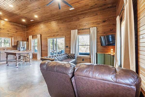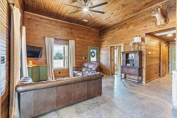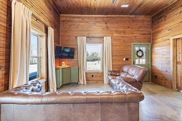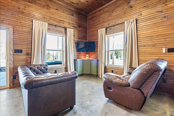 This beautiful 21 acre property is the perfect fit for those seeking a rural lifestyle, private getaway or hobby farm. Recently surveyed and 25 minutes from Fayetteville, a gorgeous 900 sq ft home with attached 600 sq ft shop awaits on a perfect blend of pasture and woods. You'll love the interior finishes and the excellent use of space. From the floor to ceiling wood, solid wood counters, thoughtful built-ins and custom tile shower, it's clear that extra detail was given. The 12 ft ceiling in the living & kitchen area creates a very open and inviting feel. A large covered patio with private views of nature makes a great spot to relax and unwind. The 600 sq ft shop is perfect for atvs and boats, can easily fit vehicles and has a 15 ft lean to attached. Roughly 4.5 acres of flat, cleared ground offers plenty of room to expand or build a larger home and would make a great pasture area for horses etc. The remaining acreage is wooded, creating privacy while giving you the opportunity to hunt right outside your door, create riding or walking trails or just soak in the views from the house. Just 15 minutes to Elkins or Huntsville, you're secluded with convenient access to town. Give this one a look, you'll be happy you did!