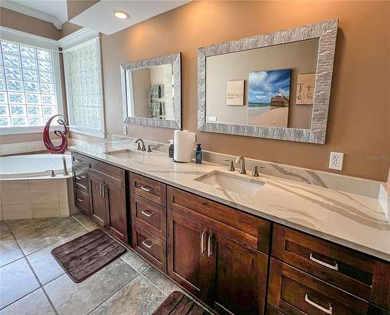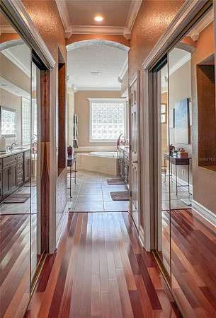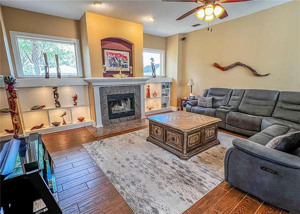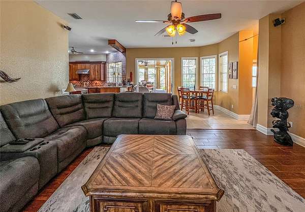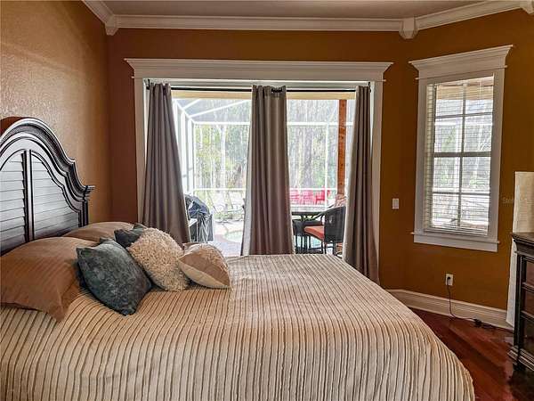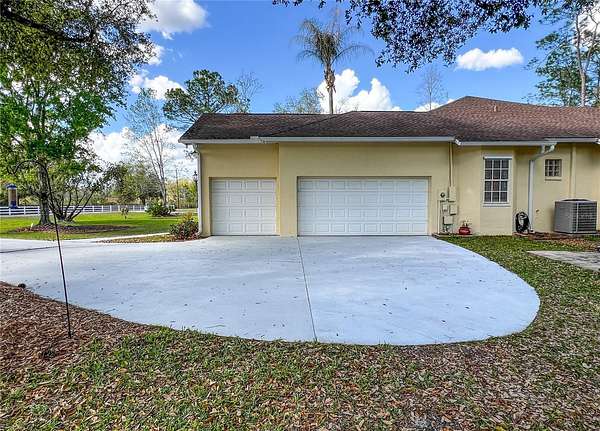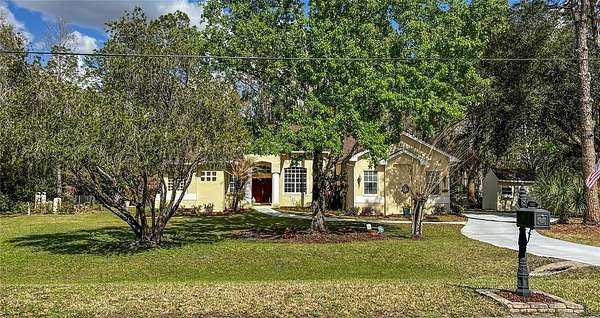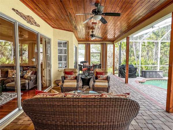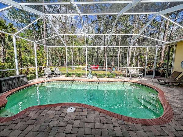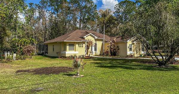 Private 2-acre pool estate in the gated equestrian community of Homesteads of Saddlewood in Wesley Chapel. A rare opportunity to own a well-maintained home on approximately 2 acres combining modern comfort with peaceful country living. Residents enjoy a horse-friendly environment with deeded access to nearby riding and nature trails. Soaring ceilings and conservation views greet you as you enter the front door. The home features an open-concept design with a desirable three-way split bedroom layout offering both comfortable gathering spaces and private retreats. The island kitchen features granite countertops, wood cabinetry with upgraded hardware, 42-inch upper cabinets with crown molding, and a breakfast bar opening to the main living space. The island also includes a KitchenAid wine refrigerator, and the appliance package features premium touches including an LG refrigerator, Thermador range hood, Whirlpool wall oven, Frigidaire cooktop, and GE microwave and dishwasher. The Family Room serves as the heart of the home with wood-plank style tile flooring, built-in shelving, and a fireplace. A separate Living Room with wood flooring provides additional space for relaxing or entertaining and is flanked by the Formal Dining Room on one side and an Office/Den with abundant natural light on the other. The oversized Owner’s Suite is privately situated and features a spa-inspired bath with garden tub, separate shower, dual vanities, quartz countertops, and elegant cabinetry. Bedrooms 2 and 3 share a Jack-and-Jill bath, while Bedroom 4 is located near a full bath that also serves as a convenient pool bath, ideal for guests or multi-generational living. Enjoy Florida outdoor living on the covered lanai overlooking the PebbleTec saltwater pool. Whether entertaining guests, relaxing poolside, or enjoying evenings on the wood deck by the firepit, this space is designed for comfort and enjoyment. Recent upgrades provide peace of mind, including a new roof (Dec 2020) with peel-and-stick underlayment, new gutters with gutter guards, new well (2021), energy-efficient dual-zone HVAC system with heat pump (2021), newer water heater, and fresh exterior paint. The home also includes a partial quick-connect generator hookup capable of powering the well, refrigerator, Wi-Fi, and several interior fans during outages. Pool improvements include an updated DE filtration system, pump, and salt cell. Additional features: water softener and iron breaker system, landscape irrigation, programmable garden watering system, landscape lighting and permanent house lighting, ADT security system, hurricane shutters and netting, invisible dog fence surrounding the property, and a 10x12 detached storage shed. Additional highlights include a 3-car garage, meticulously maintained landscaping, and a private setting surrounded by natural beauty. Homesteads of Saddlewood offers deeded access to Cypress Creek Preserve, with miles of paved and natural trails for horseback riding, biking, hiking, and outdoor recreation. Ideally located in Wesley Chapel, minutes from The Groves, KRATE, Tampa Premium Outlets, Wiregrass Mall, Cinebistro, and a growing selection of dining and entertainment. Schedule your private showing today and experience this exceptional estate property.