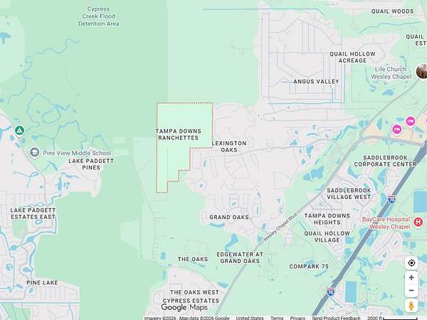 Unassigned area of Wesley Chapel with dirt roads. From 54 & Wesley Chapel Blvd head north on Wesley Chapel Blvd, then turn left onto Oaks Blvd.