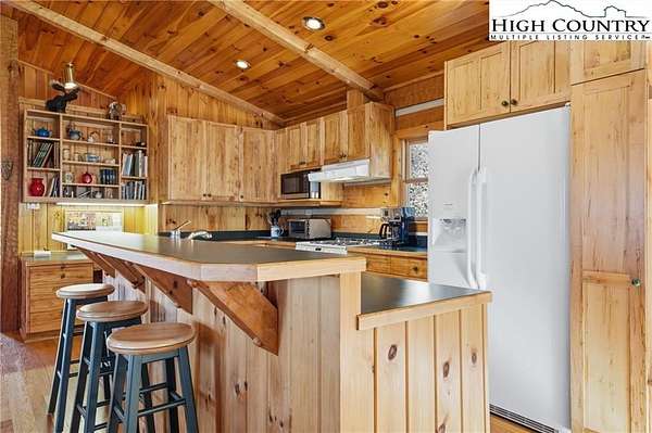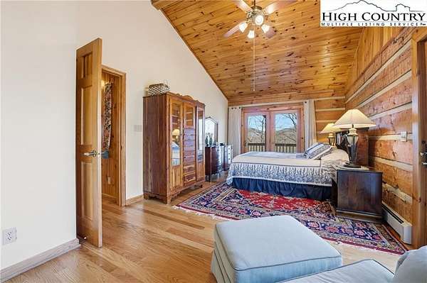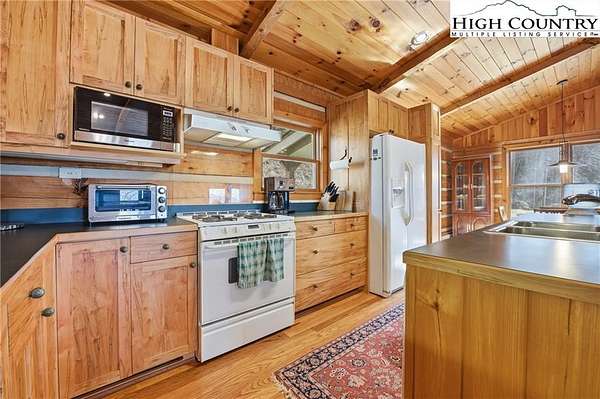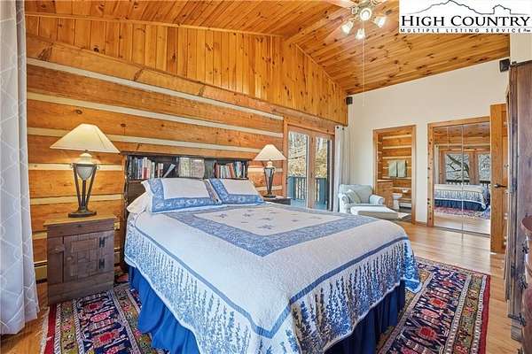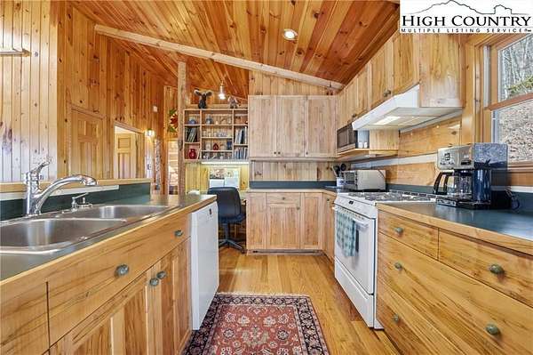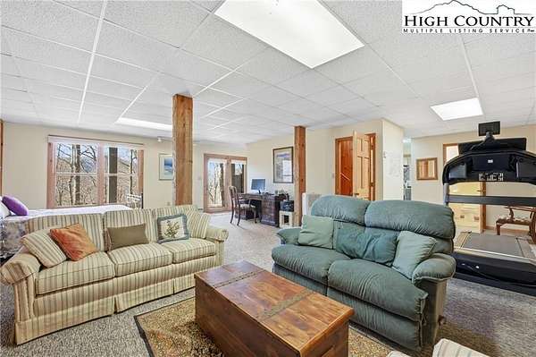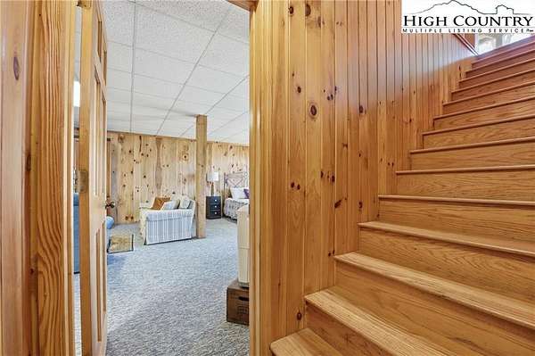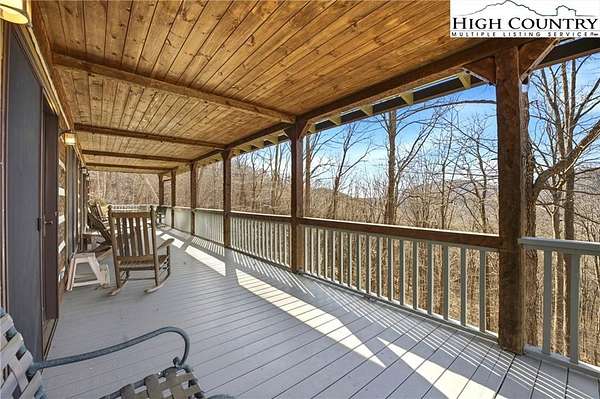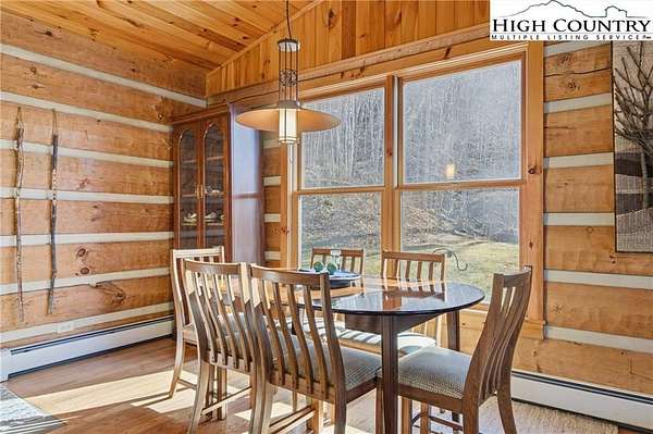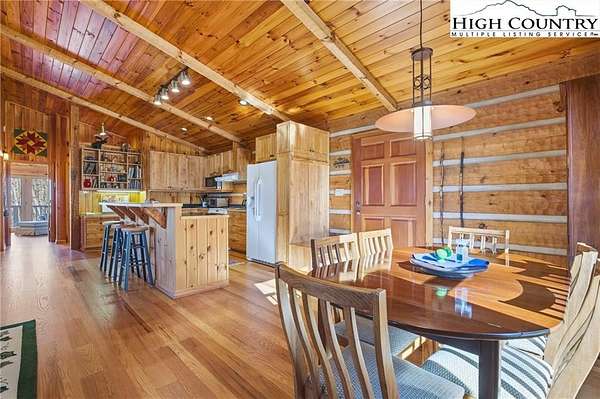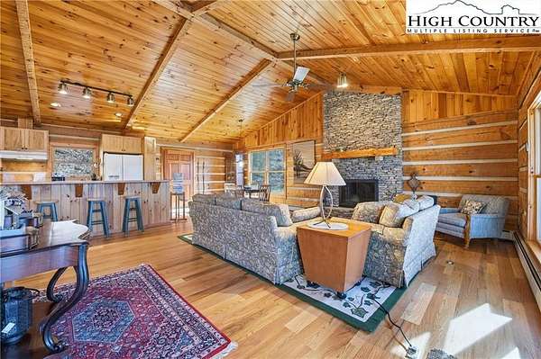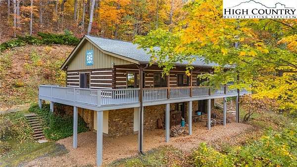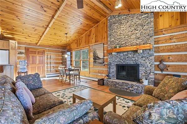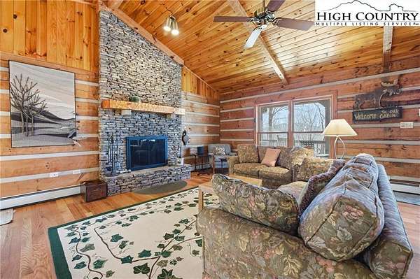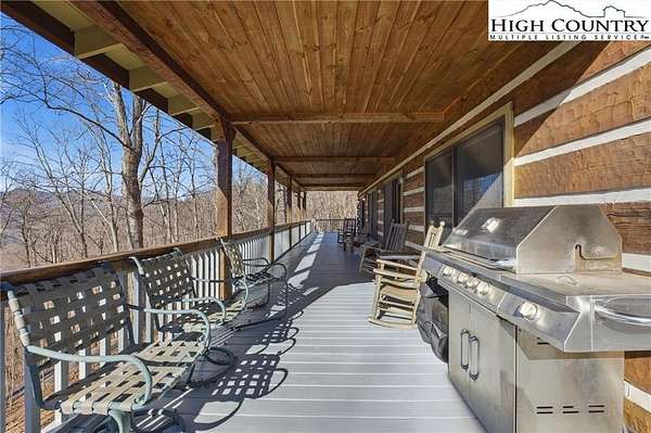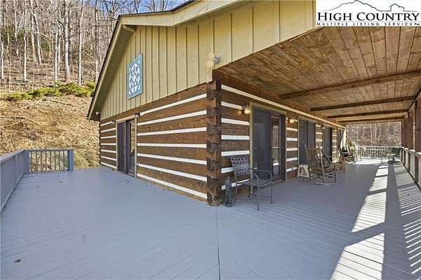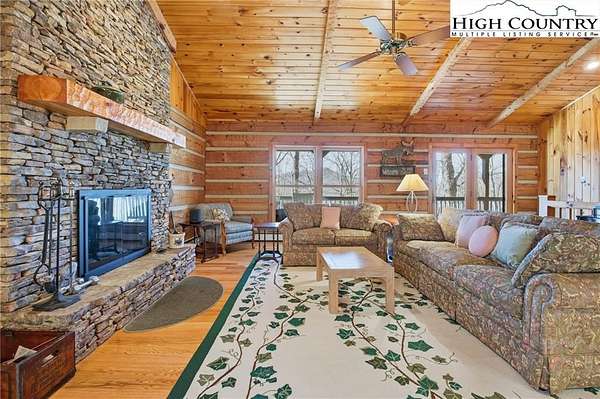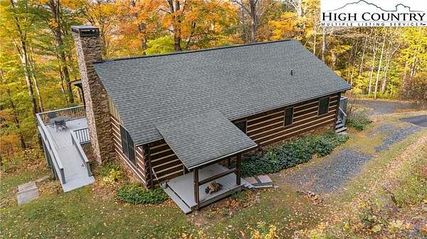 Nestled in the peaceful mountains of West Jefferson, 244 Moose Run offers a serene retreat surrounded by the natural beauty of the High Country. This inviting property features a quiet setting with wooded surroundings and a beautiful seasonal view, perfect for enjoying cool mountain air and a relaxed lifestyle. This is a custom hand hewed log cabin with a large covered deck to relax on. Walk into the vaulted ceiling open great room, with the floor to ceiling stacked stone fireplace. The open kitchen has custom wormy maple cabinets. Primary bedroom is on the main level with access to the deck with a nice en suite. Large bonus/family room on the lower level, ideal for family get-togethers or game tables. The cabin is conveniently located just 11 minutes from downtown West Jefferson, you'll have easy access to local shops, dining, galleries, and seasonal events while still enjoying privacy and tranquility. The nature reserve also borders the property for extra privacy. Whether you're seeking a full-time residence, vacation getaway, or investment opportunity, this home provides an ideal blend of comfort, nature, and small-town charm.