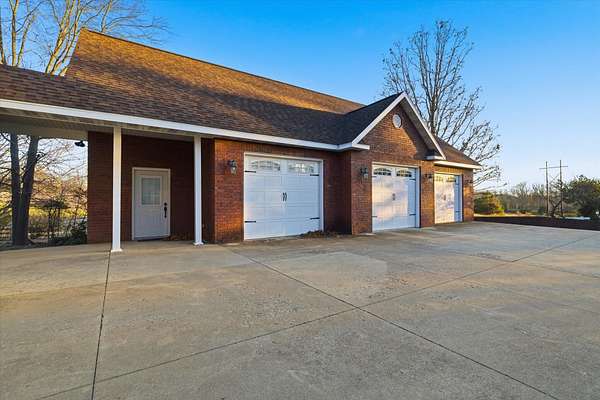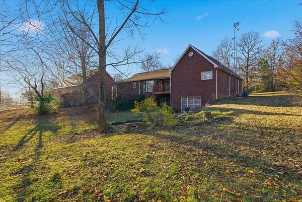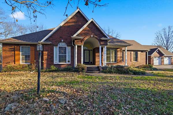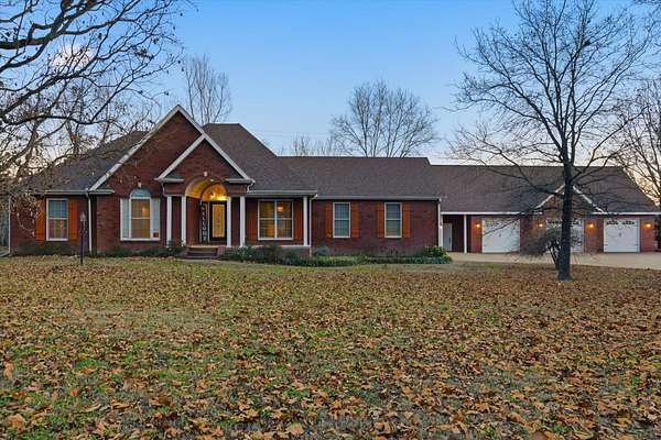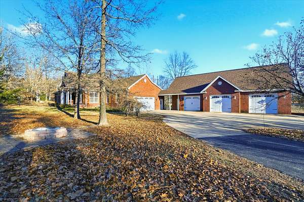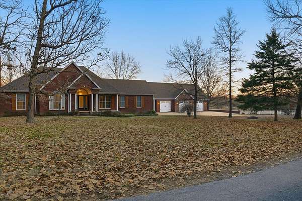 Welcome to your dream country home in the heart of the Missouri Ozarks! This expansive 5 bedroom 3.5 bath residence with finished walkout basement and full living quarters in the garage on a beautifully landscaped, with a Koi pond. 14-acres property offers an ideal blend of elegance, comfort, and functionality. The home is all brick with a back deck over looking the pasture. The property is woven wire fenced and has a barn for your animals. The gourmet kitchen features granite countertops, large pantry, and a delightful breakfast are and formal dining, perfect for family gatherings. Gorgeous hardwood and tile floors extend through the main level with lots of windows and natural light. The master is on the main floor along with two other bedrooms. The walkout basement offer two separate areas with their own access, living-room and bedroom and a fireplace. The Guest-or Air B&B is attached to the detached garage, full kitchen, bath, living-room and bedroom. Two car garage attached and three car garage dettached. across the lane is outbuilding/shop.