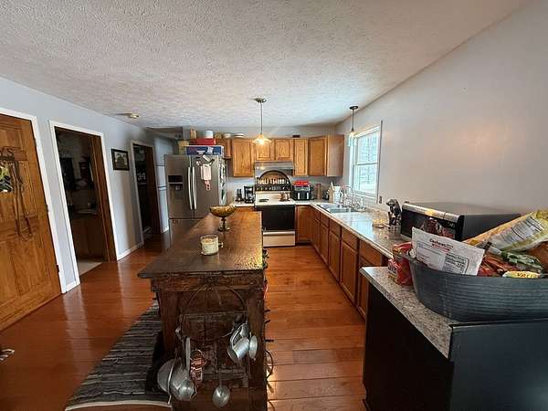 Est $1,630/moEnjoy peaceful country living with beautiful rolling hill views in this charming 4-bedroom, 2-full-bath home, located in a very quiet setting just 10 minutes from Portsmouth. The interior features gorgeous hardwood floors and solid poured concrete basement walls, offering quality craftsmanship and durability throughout. A new metal roof provides long-term value and added peace of mind. Relax on the covered front or back porch while taking in the serene views and tranquil surroundings. Exterior amenities include a 27'x45' pole barn on a concrete pad with its own 200-amp service, a carport, and a shed for additional storage. A reverse osmosis water filtration system enhances comfort and convenience in this beautiful property.