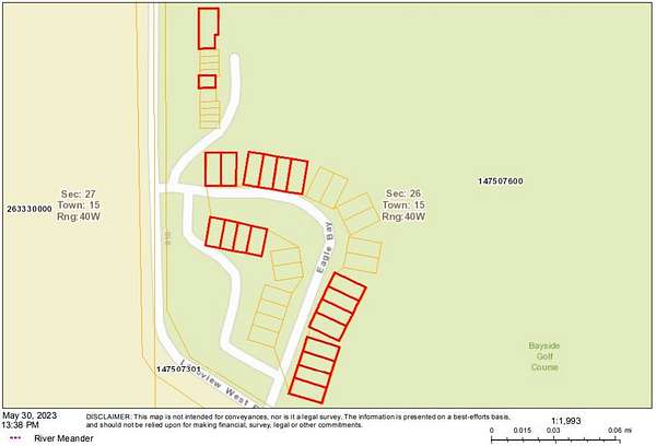 Est $237/moEagle Bay Townhome area in Brule, Nebraska, with a view of Lake McConaughy. Lots are near the 9th hole of Bayside Golf Course, one of Nebraska's premire golf courses! Lots not availble individually, but must be purchased in duplex or 4-plex offerings. Options include 1 duplex lot, 4 4-plex lots, 1 garage lot and 1 existing garage included with lot purchase. Established HOA with insurance, exterrior repairs, trash, water, septic, and lawncare included. Package price for all lots $600,000 or call for division options.