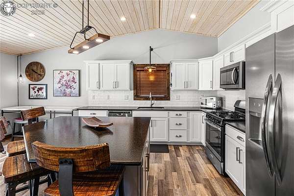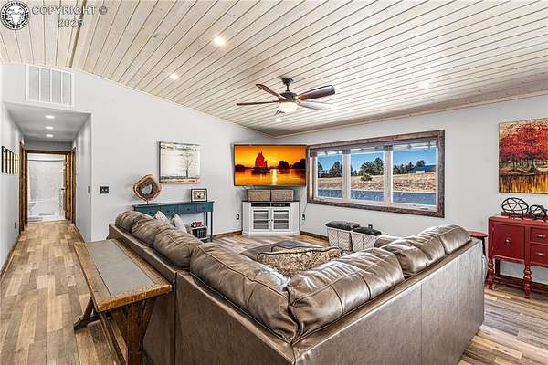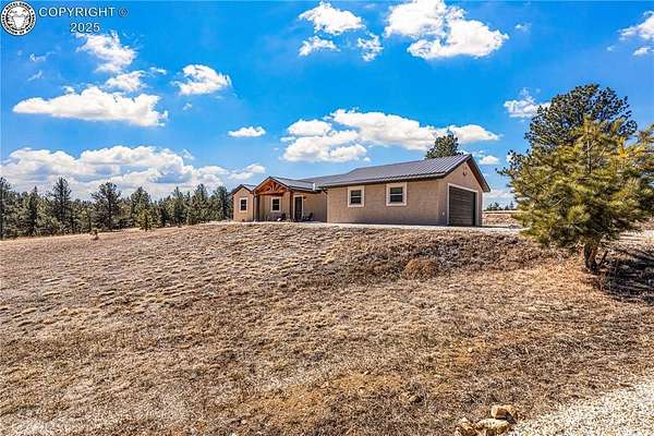 Tucked away on a lush 5.47-acre corner lot in the tranquil Blumenau community, this exquisite 3-bedroom home offers an architecturally splendid open floor plan bathed in natural light. The chef's kitchen features elegant white cabinetry, high-end appliances, and striking black granite countertops, alongside a spacious walk-in pantry. The master suite is a sanctuary of luxury with a dual vanity, upscale sinks, and a large walk-in closet. Rich wood veneer flooring and a contemporary metal roof enhance the home's durability and style-step outside to the stamped concrete patio, perfect for sophisticated outdoor entertaining. The two-car garage includes an electric car charging station and ample storage, emphasizing advanced technology. Additional amenities include an oversized laundry/mudroom. Indulge in the tranquility and opulence of this stunning Westcliffe retreat, designed for discerning lifestyles.