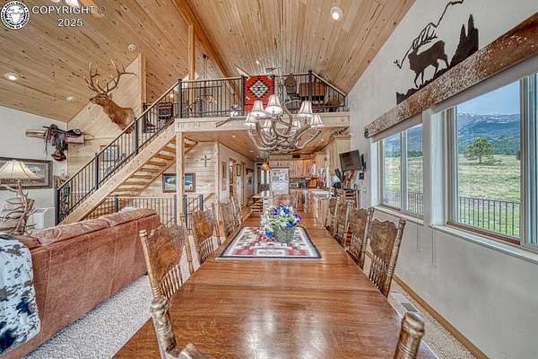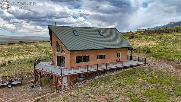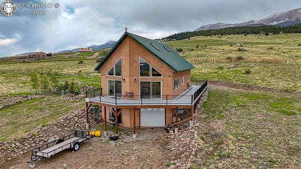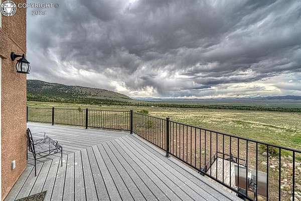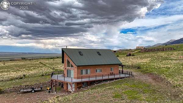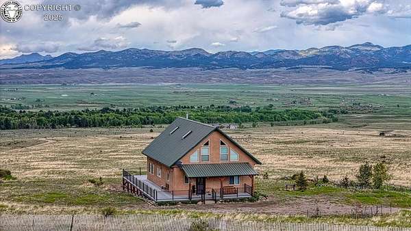 Premium West Side Property with Sweeping Mountain and Valley Views. Located on the desirable west side, this well-crafted home sits at the base of the Sangre de Cristo Mountains and offers panoramic 360-degree views of the valley and beyond. The setting is private, quiet, and truly impressive. Built for both comfort and performance, the home features a highly efficient Steffes heating system and a two-car tandem garage. A large composite deck and covered front porch create seamless outdoor living spaces to enjoy the stunning surroundings.Inside, the open-concept kitchen and living area is flooded with natural light from large windows that perfectly frame the views. The upper-level loft offers a flexible space for a home office or media area. A walkout basement adds additional room and functionality with two bedrooms and a bathroom. This is a rare opportunity to own a well-designed home in a prime location with unmatched views and solid, efficient construction.