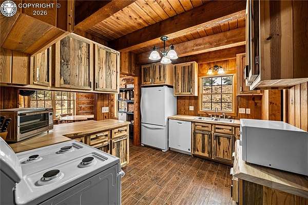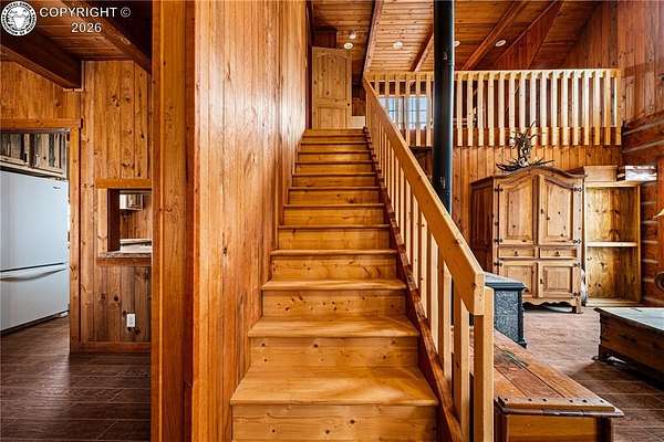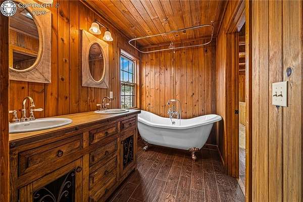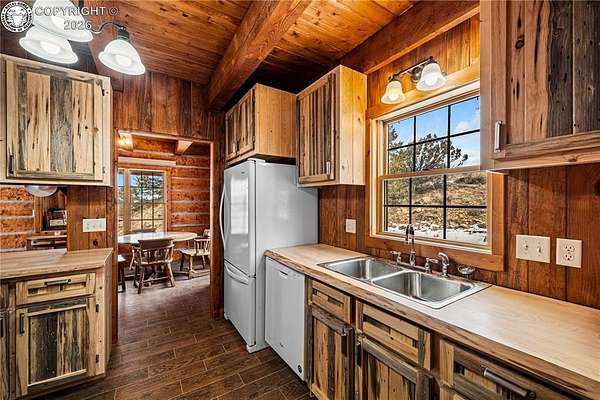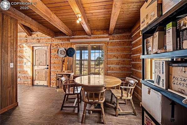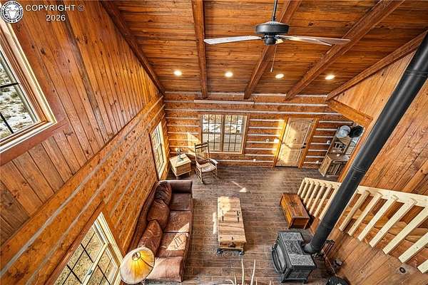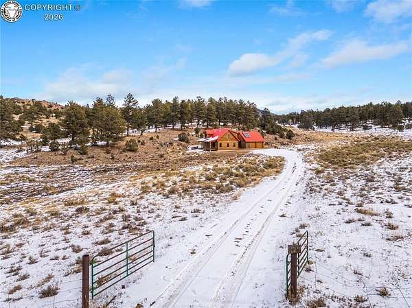 Wrapped in Timber & Quiet Magic | 56.5 Acres Where Life Slow - There's a different kind of stillness that lives here. Not empty, but full. Full of breath, grounding, and the kind of peace that lets your shoulders drop. Set on 56.5 fully fenced acres, this handcrafted log home offers privacy, freedom, and wide-open land that feels held, not overwhelming. Built in 2017, the home features 2 bedrooms, 1 full bath, 1 three-quarter bath, and main-floor laundry, wrapped in warm natural wood and soft mountain light. Cathedral ceilings create an open feel, while the clawfoot soaking tub turns everyday living into ritual. The kitchen is finished with live-edge hardwood countertops and all-wood cabinetry. Comfort comes from a Hearthstone soapstone wood stove, radiant electric heat panels, and a 105-gallon solar thermal hot water system. A light-filled sunroom connects the home to the oversized detached two-car garage, creating a breezeway that feels both practical and peaceful. Storage includes a garage loft and large crawlspace. Outside, rolling meadows and mature pines offer end-of-road privacy, no HOA, and access to Colorado's Dark Skies. This isn't a home that shouts.It hums.