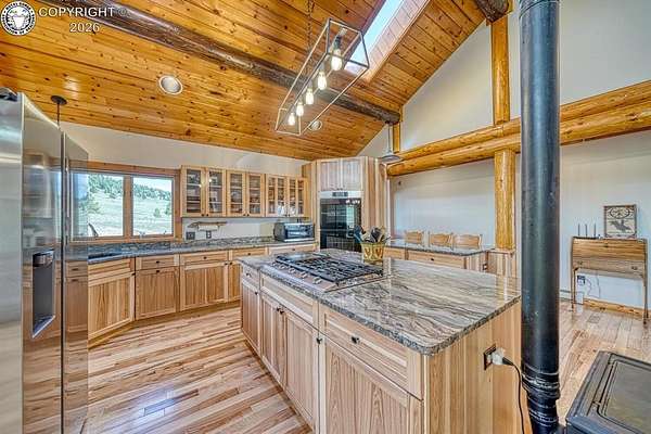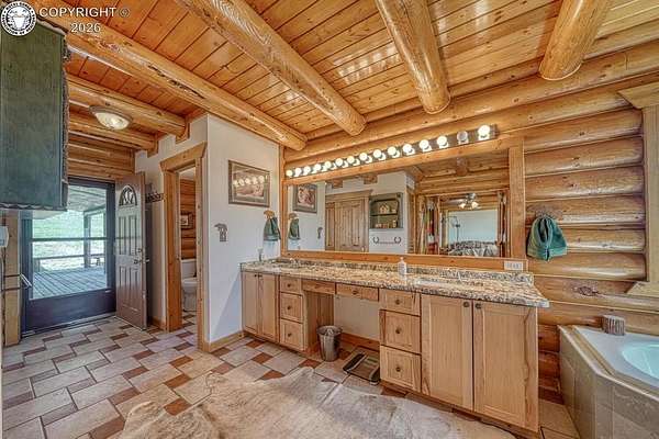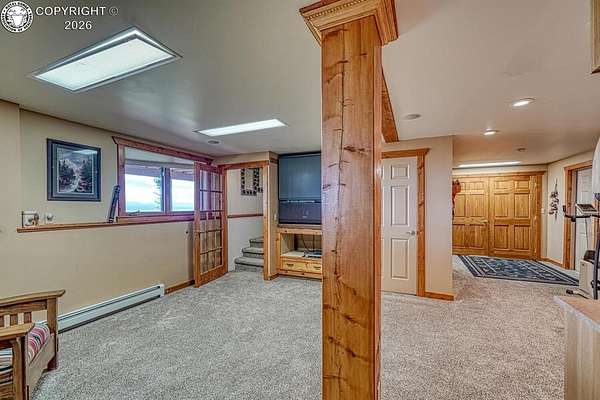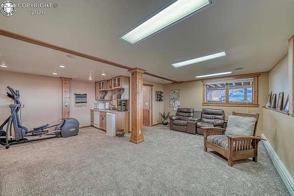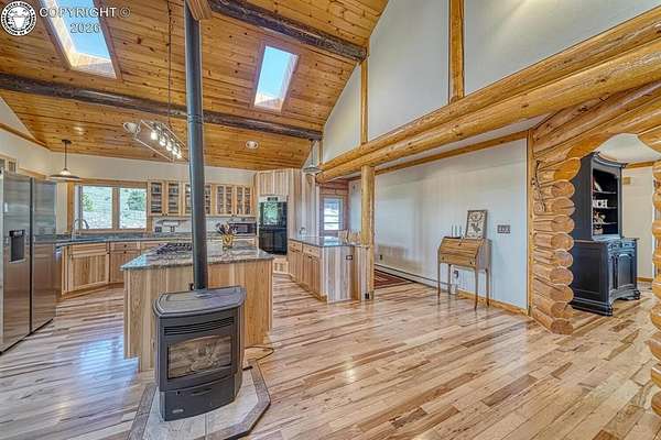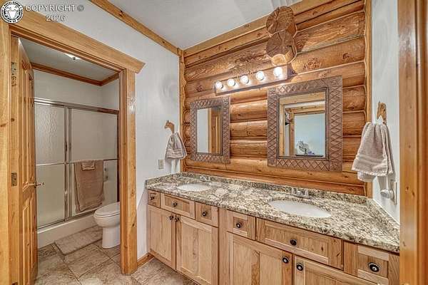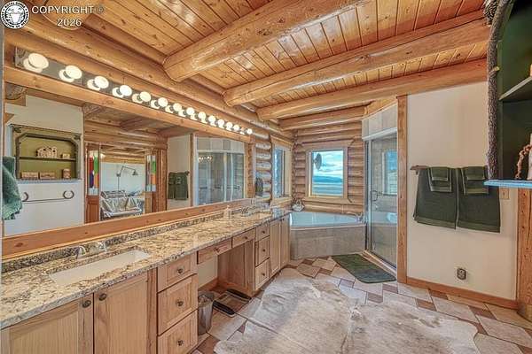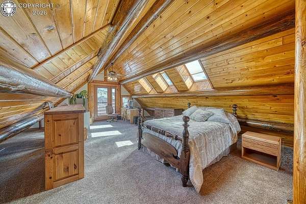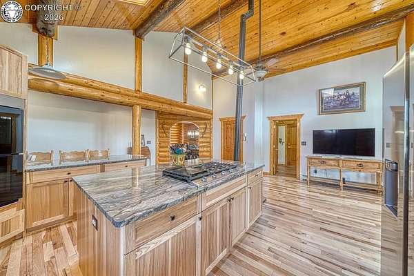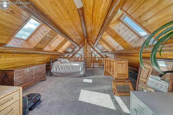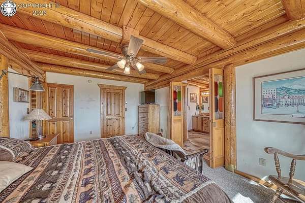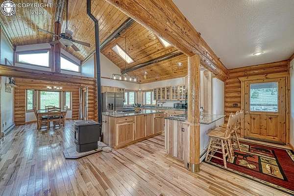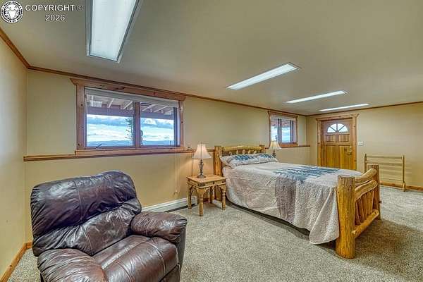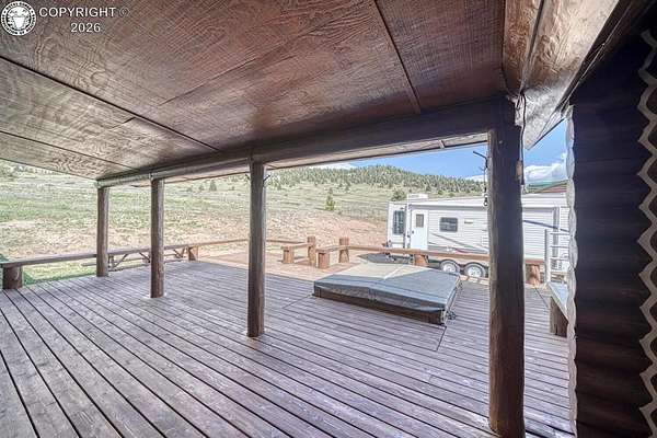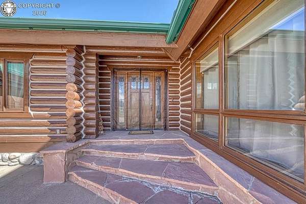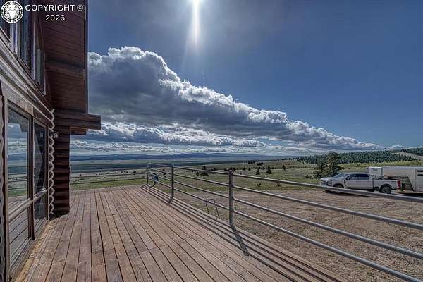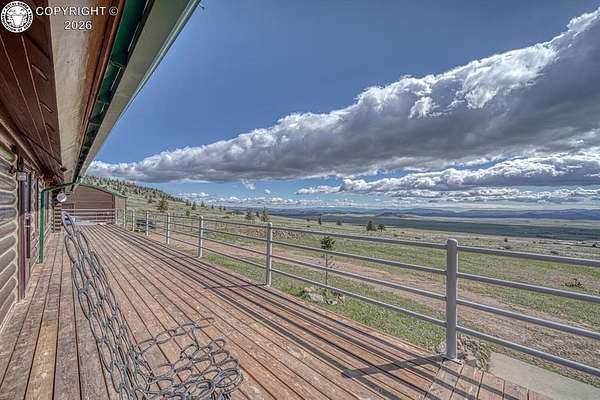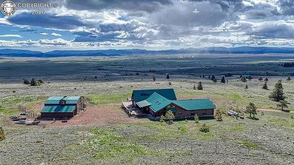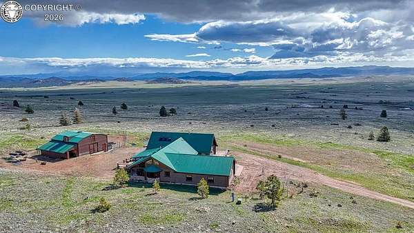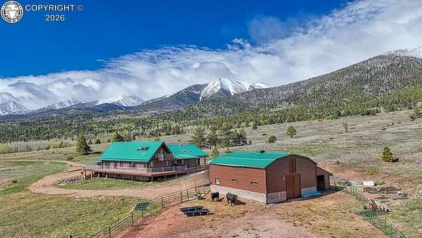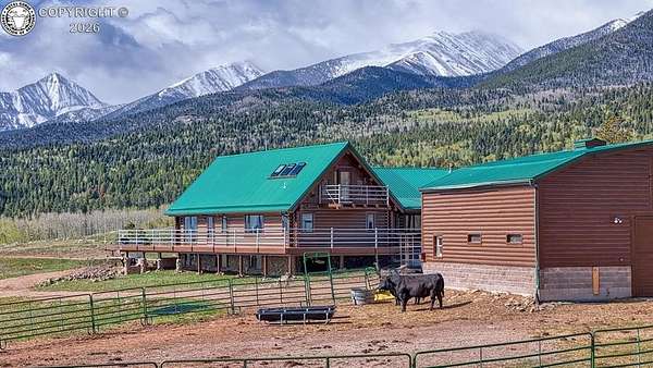Experience an exquisite blend of Western style and modern convenience at this stunning log home located at the base of Sangre de Cristo Mountains. Relax on the wraparound deck and take in the breathtaking views of Pikes Peak and the entire valley. This home features a cozy breakfast nook and a formal dining room. The master bedroom boasts a private entry to the patio ideal for unwinding. The custom fireplace centers the living room, complemented by large windows framing the spectacular outdoor scenery. The fully self-contained basement has a private entrance, offering additional living space or guest accommodations. The horse-ready barn includes 4 stalls with mats and automatic water, a feed room and a tack room. An attached 3-car garage features stamped and stained concrete, adding to the home's charm and practicality. Bordering the National Forest at the base of the Sangre de Cristos, this home sits at an elevation of 9,000 feet. With year-round access and proximity to the town of Westcliffe-only eight miles away-this property provides all necessary amenities for comfortable living. Explore the Rainbow Trail, hike to the 52 high mountain lakes, or traverse the Sangre de Cristo mountain range on horseback or foot. Situated in hunting unit 86, this ranch also offers fantastic hunting opportunities!