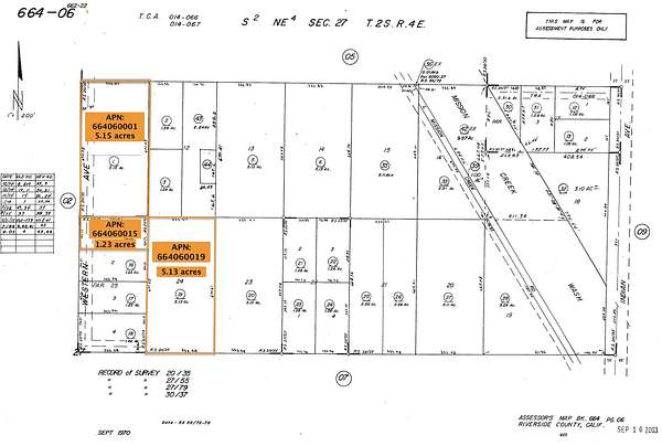 Incredible location with beautiful 360 degree views, windmills dancing in the distance, and .5 miles inland from major road (N. Indian Canyon Dr.) that transverses all the way to the south-end of Palm Springs. This area is booming and has seen tremendous growth in the past years. The cannabis industry has transformed the area North of this property and has created high demand for housing. This 5.13 acres/ 223,463 sq ft parcel can be purchased with its adjoining lots APN # 664060015 (1.23 acres), and APN # 664060001 (5.15 acres) to create an 11.51 acre spec or tract home development, or simply for one's own enjoyment of this serene land. This is a rare opportunity that may never be available again. The future of Desert Hot Springs is growth and expansion, being named one of the most financially stable cities in the state, the future is more than bright, it's a smart investment. Note: This property is zoned for residential use. Access to the property is off Western Ave., please contact the agent for showing access and specific coordinates, there are no markers on the property. Buyer to do own due diligence on property and surrounding land ownership/use. Contact Desert Hot Springs Planning Department to inquire about the potential uses of this property.
