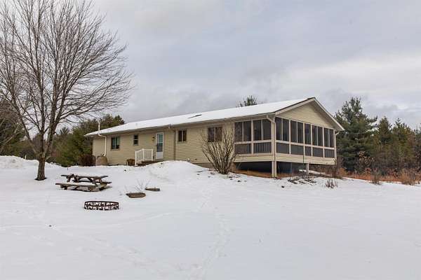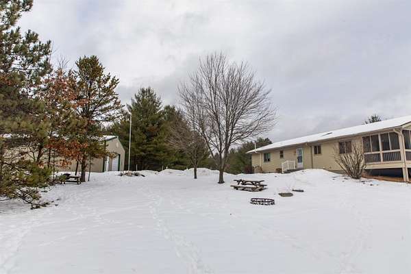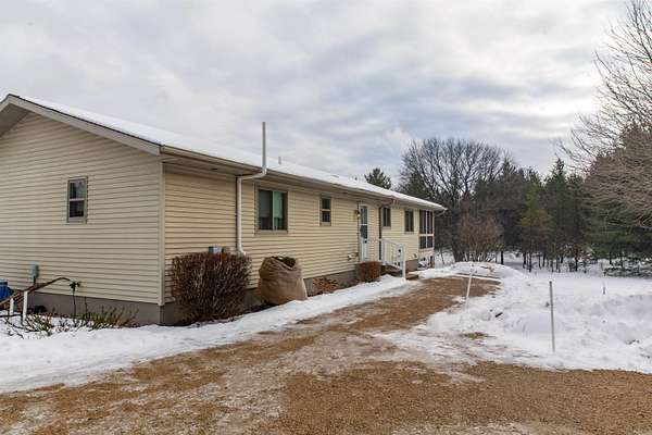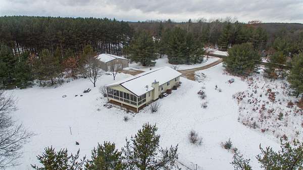 Ready for peaceful country living just 10 minutes from I-39? This 3-BR, 2BA home sits on over 5 mostly wooded acres. Well-designed open floor plan features main level laundry, handicap-accessible walk-in shower and roomy screened porch to enjoy the outdoors. Neutral colors throughout suit most decor choices. Full basement, already stubbed for a future bathroom, provides many possibilities for additional living space, play area or storage. 28x36 Cleary building ideal for your vehicles, toys and a workshop space. Garden area is fenced in to keep the deer and rabbits at bay. This property checks so many boxes while combining privacy and convenience. Located between Westfield and Coloma just minutes from Wood Lake.