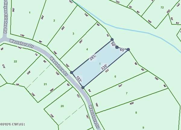 From the intersection of 45 Bypass and Christmasville Rd in Trenton, head east on Christmasville Rd. At the 30-way stop, turn left to continue on Christmasville Rd. Left on Charlie Lewis Rd. Right on Lake Hayes Estates Rd. Right on Westshore Dr. Lot 5 is on the left.