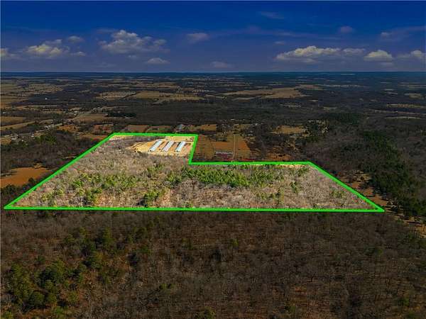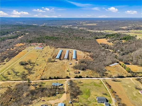 59.42 Ac +- | Poultry Farm Opportunity o Hunting o Investment Potential. Discover the endless possibilities with this 59.42 ac m/l tract ideally located less than 5 miles from Westville and only 20 miles to Siloam Springs. The property features three chicken houses that are no longer in operation but provide excellent large-scale storage or workshop space. Utilities are well established with gas ran to all chicken houses, two water wells, rural water, and a water filtration system already installed. A 1,728 sq ft (per CH) 2 bed, 2 bath home sits on the property and would make a great rental, employee housing, or primary residence. Additional improvements include a greenhouse and two septic systems. The land itself is a strong mix of function and recreation. Fiber internet is available, offering modern connectivity in a peaceful country setting. Whether you're looking for an investment property, hunting retreat, farm, or development opportunity -- this tract checks all the boxes. Owner financing available.