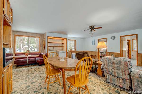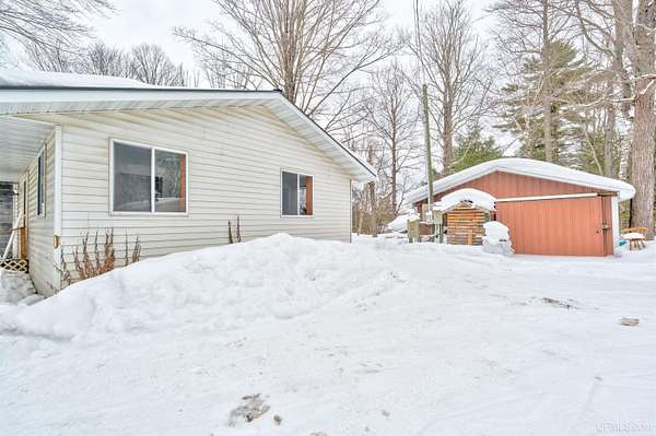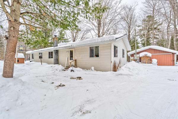 Escape to this sportsman's paradise perfectly nestled on 2.5 wooded acres along the shores of Stevens Lake. Located halfway between the wonders of Lake Michigan and Lake Superior, you are just 25 minutes from the amenities of both Manistique and Munising. Enjoy 100 feet of frontage on an all-sports, semi-private lake. Whether you are panfishing from the shore or launching a small boat for bass, this interior lake offers serene mornings and peaceful evenings accompanied by loon calls and soaring eagles. Built in 1995, this 1,624 sq. ft. single story ranch style home features an open-concept layout. The expansive 23 x 32 great room is designed for hosting, providing ample space for the whole group to gather by the wood stove after a day of adventure. With great lighting and windows everywhere, you'll watch generations of deer wander through your yard in this tranquil rural setting, as well as a variety of birds showing up at your feeders! The two large garages will hold all your equipment to enjoy four seasons of fun. There's plenty of adventure just outside your door: Situated in the heart of the central Hiawatha National Forest, you are minutes away from premier trailheads for hiking, biking, kayaking, and birding. Snowmobilers and ATVers will find miles and miles of trails, too. Get a jump on the spring market and scoop up this year round waterfront property as your getaway spot or a full time home. There is another short term rental in the area, making this one also a possible income producing opportunity.