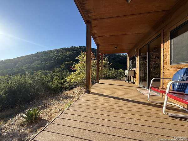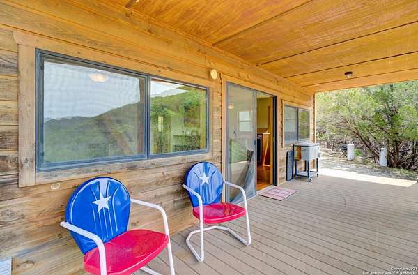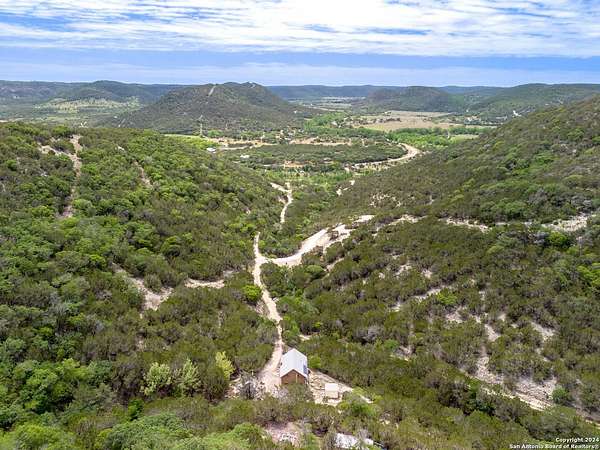 River access and views galore! Located on White Bluff Road in Medina, TX, this 14.83+/- acre property offers an off-grid lifestyle surrounded by the natural beauty of the Texas Hill Country. The property includes a two-story furnished cabin built in 2009 with approximately 1,344+/- sqft of living space. The cabin features four bedrooms, two bathrooms, a small sleeping loft, and a covered front porch overlooking the hillside. Interior details include yellow pine floors, tile countertops, and a wood-burning fireplace that enhances the cabin's rustic character. Built for self-sufficient living, the property operates off-grid with solar power, a backup generator, a rainwater catchment system with UV filtration, and propane utilities. The acreage has partial perimeter fencing and is well-suited for hunting, with abundant native wildlife. Owners also have access to a neighborhood river park along the Medina River, providing opportunities for fishing and swimming. The elevated setting offers long-range Hill Country views and a private, natural environment for recreation or relaxation. Combining privacy, functionality, and natural scenery, this property presents a unique opportunity for a sustainable Hill Country retreat. Owner financing may be available for qualified buyers. Schedule a private showing and come see what makes this one-of-a-kind retreat so special!