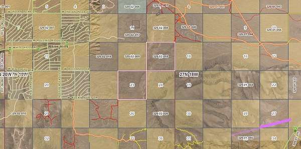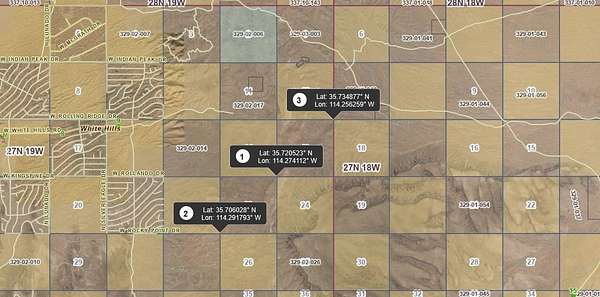 Est $8,744/mo2 adjacent sections of Ranch land East of White Hills & NW of Dolan Springs. Various high desert trees, rolling, sloping and mountainous terrain. Close to Lake Mead, Colorado River, Grand Canyon West and Las Vegas. Trail road access from Cyclonic Pumping Station Rd to upper section. Seller willing to split sections and sell separately, can be done in escrow.