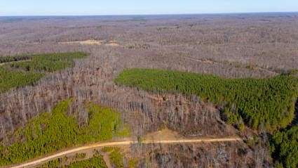 Timber across the tract includes a mix of planted pine, mast-producing hardwoods, and softwood species, with select-cut sections providing thick bedding cover and security habitat. These select-cut areas have regenerated into early successional growth, producing dense cover, abundant browse, and excellent nesting and fawning habitat that significantly enhances the property's appeal for deer, turkey, and other wildlife. An established internal trail system and gravel access roads allow easy access throughout the property. Abundant deer sign indicates a healthy wildlife population and consistent game activity.