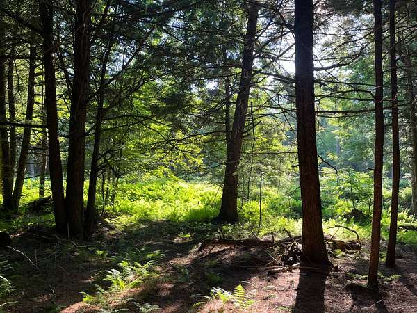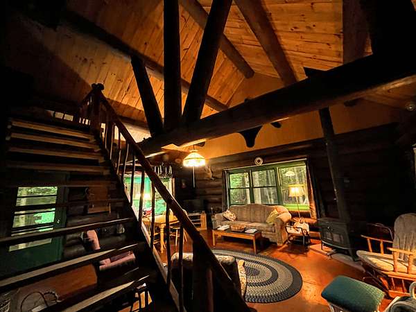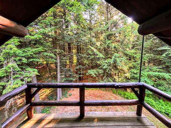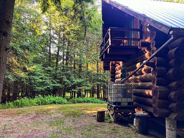 13 acres Land for Sale with Off-Grid Log Cabin, Pitcairn NY! Hunting Land with Trails, Food Plots, and Spring-fed pond! This exceptional 900 Sq. ft. off-grid cabin, built to last, is a true masterpiece of craftsmanship. Constructed by the seller using massive 15+ inch diameter Red Pine logs, each log was meticulously carved to fit the contour of the next, creating a truly unique and impressive structure. The cabin has a main footprint of 22' x 32' with a sleeping loft and features extended overhangs on the gable ends and eaves, providing excellent protection for the logs from the elements. Inside, you'll find vaulted ceilings and beautiful natural log accents. The second floor features a spacious loft bedroom with a private balcony offering serene views of the surrounding forest. The cabin is equipped with a functional bathroom featuring an on-demand water heater and a flushing toilet. While there is a septic system in place, water is sourced from rainwater collection and stored in a cistern, then gravity-fed into the cabin. Drinking water is brought in as needed. For power, the cabin is wired for a generator, and a wood stove provides warmth during colder months. Most furnishings seen are included in the sale. The cabin is situated on a remote 13-acre parcel that has been thoughtfully developed and utilized for hunting over the past 19 years. The property was recently logged, and during this process, the seller strategically cleared areas for food plots and natural browse, enhancing the habitat for wildlife. Access to the property is via a gravel road that connects to a town-maintained gravel road, which is not plowed in the winter. This lot has been surveyed. This cabin is centrally located to the Adirondacks and the Tug Hill. The surrounding area offers easy access to thousands of acres of State land, Rivers, Lakes, and Recreational trails. If you have dreamed of owning a true log cabin and being off the beaten path, this property is definitely worth a look.