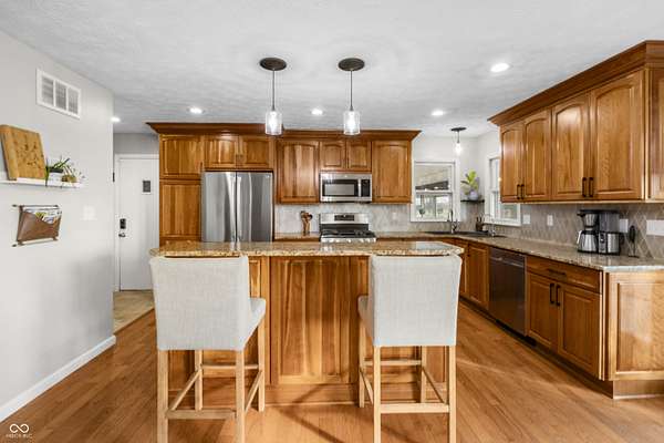 Set on a beautiful 3 acre parcel this thoughtfully updated ranch offers a rare blend of privacy, space & everyday convenience, all just 2 minutes from shopping, dining & easy highway access. Properties with this amount of land so close to town are increasingly hard to find. The main level features hardwood floors, a bright & welcoming layout with abundant natural light. A spacious sunroom overlooks the serene setting & provides a seamless connection between indoor living & the surrounding landscape. The kitchen is both functional & refined featuring matching GE Profile appliances, custom cabinetry & granite countertops, designed for comfortable daily living & entertaining. The finished basement expands the home's versatility with a home theater area, wet bar, large private office & half bath, ideal for remote work, hobbies, or hosting guests. With 3 bedrooms & 2 full plus 2 half bathrooms, the layout offers flexibility & comfort throughout. Recent exterior improvements include a new roof, seamless gutters with guards, new fiberglass windows & refreshed exterior paint. Major mechanical updates such as a newer HVAC system, water heater, water softener & updated electrical components provide peace of mind. Outside, the land truly sets this property apart with mature trees, newly planted evergreens, fruit trees, garden space & a large fire pit. A barn with 2 large animal stalls, updated electric, lighting & a 220 amp outlet, ideal for hobby farming, livestock, or workshop use. As well as a separate chicken coop, this home offers endless possibilities. This is acreage living without the tradeoffs of a remote location. Extensive improvements inside & out make this a rare opportunity to enjoy acreage living without sacrificing convenience. **CR 400 N is also called Paul Hand Blvd, this is better using maps apps.