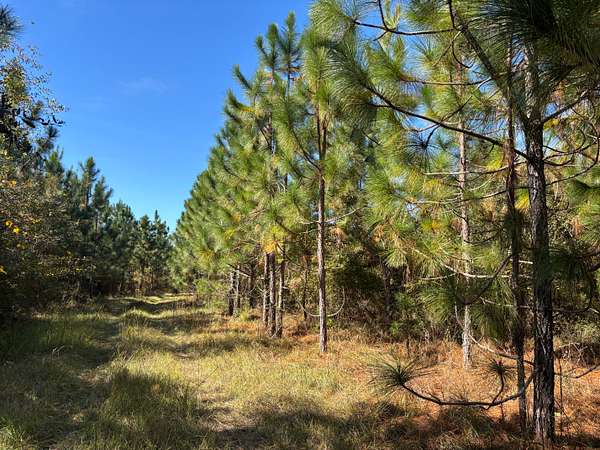 The upland portions of the property are predominantly planted in longleaf pine, one of the most desirable species in the Southeast for both timber and potential pine straw income. The remaining portions of the tract are planted in loblolly pine, providing a diverse mix of age classes and species for long-term timber income and habitat diversity. Along the northern boundary, Whites Creek meanders gracefully, bordered by stands of natural hardwoods and pines that add scenic beauty and excellent wildlife habitat. Deer, turkey, and small game are abundant, making this an exceptional recreational and hunting property.
