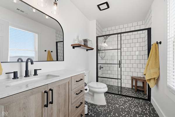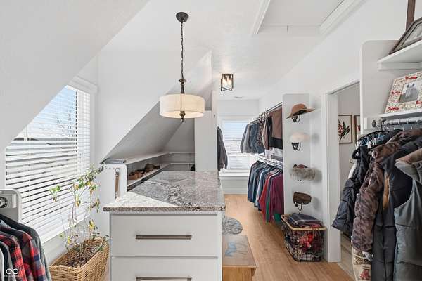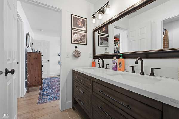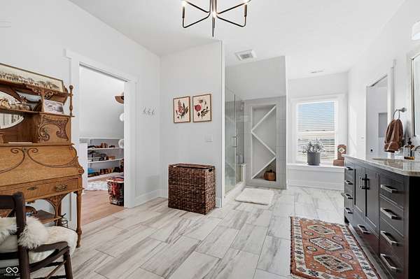 - Bath Sinks Double Main, Breakfast Bar, Eat-In Kitchen, Entrance Foyer, Hardwood Floors, High Ceilings, In-Law Arrangement, Kitchen Island, Paddle Fan, Pantry, Smart Thermostat, Supplemental Storage, Tray Ceiling(s), Walk-In Closet(s), Wood Work Painted
