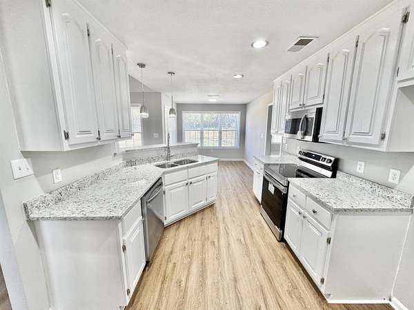 Modern living meets peaceful country charm on 2.75 acres. This beautifully updated 4-bed, 2-bath home features 3 bedrooms down and one up, plus a reinforced tornado room discreetly placed in the primary bath closet. The home has been refreshed throughout with bright Chantilly Lace paint, new luxury vinyl planks in high-traffic areas, and soft new carpet and pad in all bedrooms. The kitchen now shines with granite countertops and all-new stainless steel appliances. Both bathrooms were fully renovated with stylish shower surrounds, framed mirrors, upgraded faucets, and coordinating tile floors, creating impressive, cohesive spaces. Matching lights, fans, and updated door and cabinet hardware carry the design seamlessly throughout the home. A brand-new well was also installed during the renovation. Come enjoy quiet country living while relaxing in a thoughtfully modernized home.