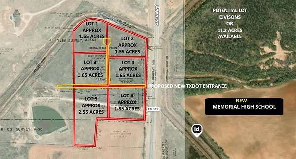 Approx 1.85 acres of Prime commercial development opportunity on 11.2 acres ideally positioned for high visibility and future growth. Located across from Memorial High School, this property benefits from approximately 24,000 vehicles passing daily, providing outstanding exposure for retail, restaurant, or service businesses. TxDOT has proposed a new access entrance that will align with the new Memorial High School, enhancing accessibility and traffic flow to the site. CITY OF WICHITA FALLS IMPOSES NO IMPACT FEES!!! These tracts offers flexible development potential and may be replatted into smaller parcels as shown here and purchased individually as shown, with proposed parcel sizes available once approved by the city, allowing investors or developers to secure individual sites tailored to their needs. Alternatively, the entire parcel can be purchased and developed into a shopping center, retail strip, or mixed commercial development to serve the rapidly growing surrounding area. Purchase the entire parcel or individual tract.