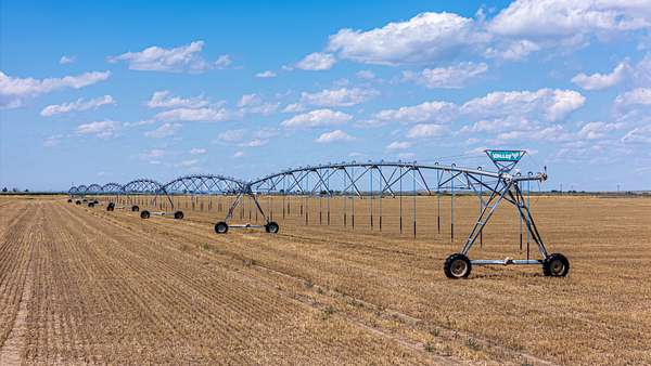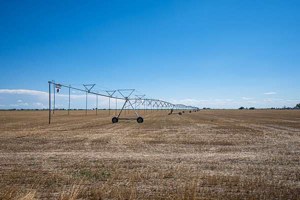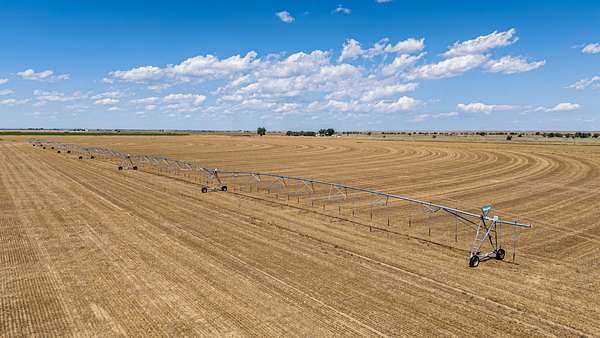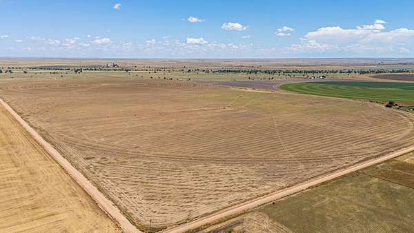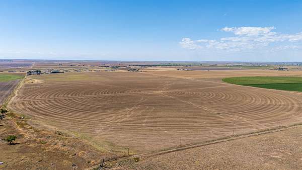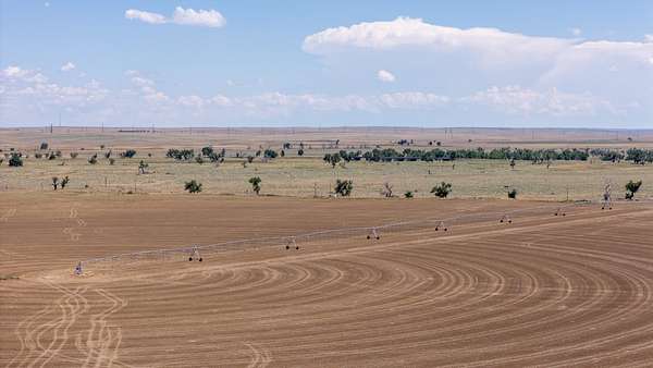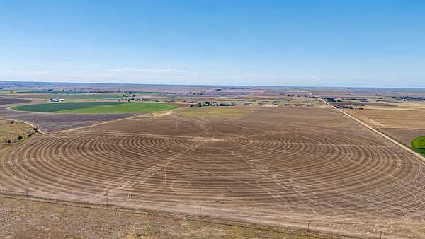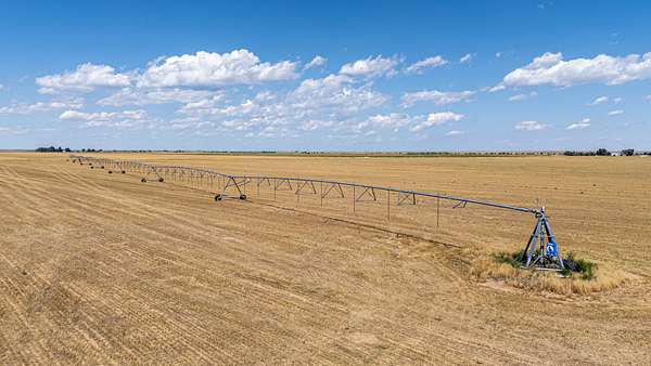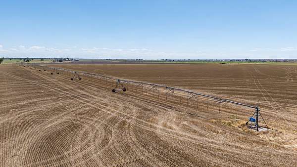 +- 310 acres of irrigated Farm Land. The land is irrigated by two irrigation pivots. The land has 810 acre feet of adjudicated water rights that can be used to irrigate the land. There are currently 4 wells on the property. One well irrigation well is currently pumping at around 400-425 gpm. The other three wells will need to be re-drilled if the buyer desires.