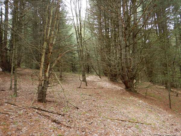 As you enter the property from Wightman Rd. you will see a former logging trail that meanders up along the edge of the pines to the pinnacle of the hill where it splits and can take you to all corners of the property. The planted scotch pine creates a diverse habitat with a dense understory perfect for small game and big game alike. There was ample deer and turkey sign throughout the property.