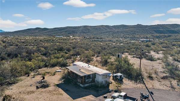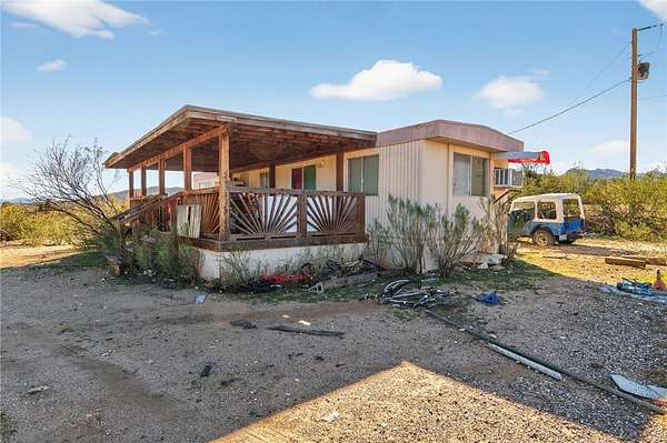 Endless potential awaits with this 1977 single-wide home situated on just over 5 acres in Wikieup, AZ. This handyman special offers 1 bedroom and 1 bathroom, providing a solid starting point for renovation, expansion, or a custom desert retreat. The property is equipped with electric, septic, and a private water well, giving you the key utilities already in place-an incredible value for a rural acreage property. Enjoy sweeping panoramic mountain views in every direction, offering peace, privacy, and the perfect Arizona backdrop. An added bonus: Parcel #203-14-035 conveys with the sale, giving you additional land and flexibility. This property also directly connects to MLS #034672, presenting a unique opportunity for a larger combined homestead or investment project.
