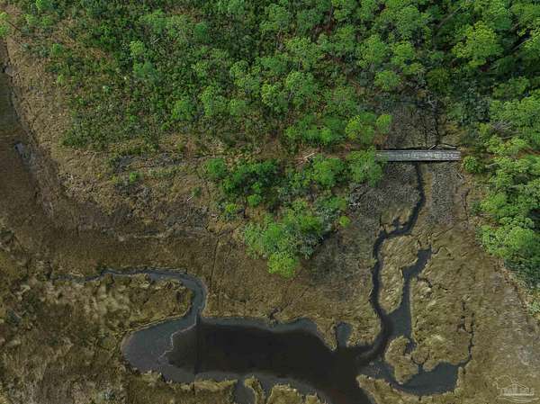 Waterfront and forest lot in Gulf Breeze on Santa Rosa Sound. Unique lot and location to build your dream home. This opportunity offers both waterfront living with fantastic sound views and the forest of the Naval Live Oaks Nature Preserve with access to over 7 miles of hiking trails! A true nature-lover's paradise filled with mature trees, sawgrass, and with a continuously running spring, which attracts abundant wildlife. Access via private drive and bridge over estuary to partially-cleared lot. Home will require piling construction and further permitting prior to construction. Bring your love of nature and your imagination!