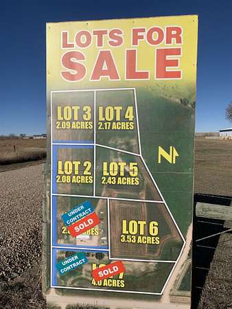 From Belle Fourche go east on US HWY 212 for 3.6 miles and turn left onto Wyatt Way. See Great Peaks Realty For Sale Sign and Lot Map.