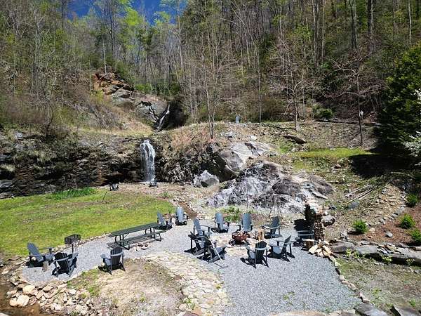 Head east on US-64E/US-74E from downtown Murphy. Continue approximately 20 miles on US-64E/US-74E. Turn right into the Wilderness Creek Falls subdivision on Wilderness Creek Way, just before the Tennessee state line. Proceed through the gated entrance and follow the community roads to Lot 44