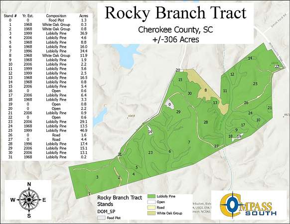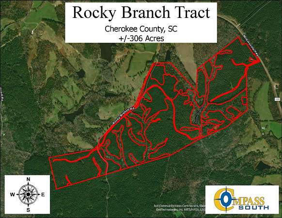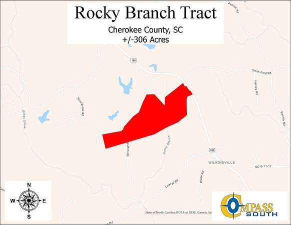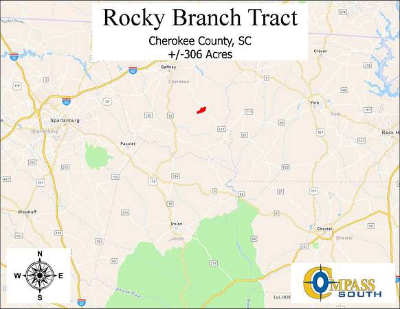 Welcome to the Rocky Branch Tract, a stunning +/- 306-acre property located just 15 minutes from downtown Gaffney and 40 minutes from Spartanburg, SC. This expansive tract offers incredible opportunities for timber investment, hunting, and recreation. The property consists of multiple stands of loblolly pine plantations at various age classes, as well as several hardwood drains. Also including the scenic Rocky Branch stream. An extensive internal road system ensures excellent access throughout the property, making it ideal for management and recreational use. With access from Highway 105 (Wilkinsonville Hwy), Rocky Branch Tract is conveniently located for a range of uses. Perfect for hunting enthusiasts, the property is home to abundant deer, turkeys, and other wildlife, making it a prime hunting location. It also offers a beautiful setting for building a home, with ample space for recreational activities and peaceful surroundings. It's not often you can find a large tract like this in the upstate of South Carolina, don't miss out on your opportunity to own one! Contact us today for a private showing.