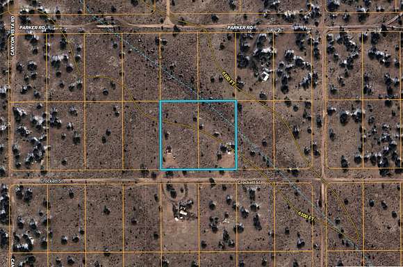 The 2.12 acres of these two adjacent homes in Williams, Arizona, offer the ideal setting for off-grid living, investing, or a tranquil retreat. With no HOA restrictions, you may build your own house with solar electricity, a well, and a septic system, park in an RV for up to 120 days a year with a permit, and have easy access via E Crockett Drive.