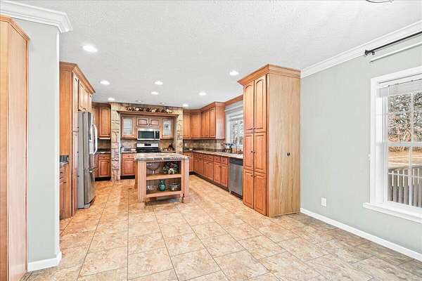 First time on the market, this home on 5.97 acres in a secluded hideaway but moments back to I 75 is a homeowner's dream. The inviting covered front porch has views of a cleared area, trees beyond and the stunning rolling hills on the western side of Williamsburg. A like new, well maintained, one owner home has abundant space with a large open concept living area that showcases a floor to ceiling stone fireplace with gas logs and an office for work from home ease. The kitchen has stainless appliances, large wood cabinets for lots of storage, a center island with breakfast seating. Entertain in style with a dining room, a covered back deck and an easy indoor-outdoor flow. The split floor plan allows for loads of privacy as the primary bedroom has a set of double doors into its' own ensuite bath complemented by a tile accented shower, separate garden soaking tub and dual vanities. There are 3 additional bedrooms that share an oversized bath also with dual vanities. The property has a detached garage/building 32x80 complete with 4 bays with automatic garage openers, 1 has extra height for large toy storage. It is metal, with a concrete floor and electric hooked up. There is plenty of room for a workshop and all the toys you need for your new acreage. This property also has FREE GAS to power appliances, heating, water heater and gas logs. Don't wait to check out this unique property, it is priced to sell.