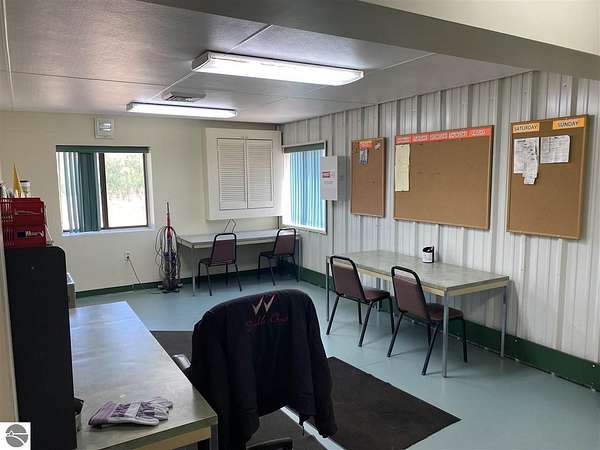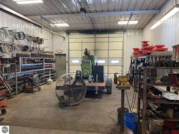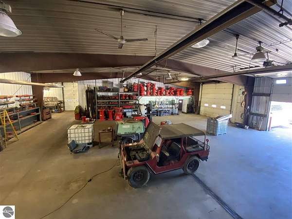 This 8,426 SF industrial building sits on 1.54 Acres with access to additional land for outdoor storage at an additional cost. The building, with 16' ceilings, includes 4, 14' OHD's, office and break room area, storage mezzanine, paint booth, and a 2 Ton Dayton crane. The main structure consists of 6,500 SF with an additional covered storage area of approximately 1,300 SF and an additional covered truck bay of 624 SF. This property is located off of M-72 just east of Traverse City and has easy access to east and west via M-72, and then North and South on US-31 only a few miles away.