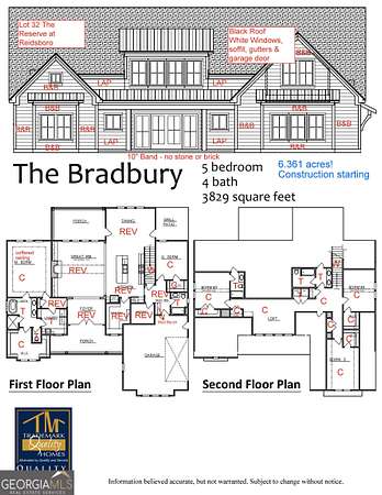 WOW! 6.36-Acre Lake Lot - New Plan! "The Bradbury" | 3,829 Sq Ft | 5 Bedrooms | 4 Full Baths This is the one you have been waiting for! Set on a breathtaking 6.36-acre lake lot, The Bradbury is a stunning new construction plan designed for space, light, and livability. If you love abundant windows and natural light, this expansive home delivers at every turn. A striking quad-door entry opens into the foyer and flows seamlessly into an open-concept layout featuring a large great room with vaulted ceiling and a wood-burning fireplace. Quad sliding doors lead to the covered rear porch, creating effortless indoor-outdoor living. The gourmet kitchen is a true centerpiece, offering stainless steel appliances, quartz countertops, glass pendant lighting, a spacious 10-foot island, and a walk-in pantry. The dining area provides direct access to the grilling patio, making it ideal for entertaining. The first-floor primary suite is a private retreat, highlighted by a coffered ceiling and a luxurious bath with a freestanding soaking tub and a separate tiled shower. For added convenience, the primary suite offers direct access to the laundry room. Also located on the main level are a guest bedroom, a full bath, and a private office. Upstairs, beautiful loft spaces filled with natural light overlook the living areas below. Three additional bedrooms and two full bathrooms complete the upper level, including one bedroom with a private en-suite bath. Additional features include cement board siding, architectural shingles, Low-E windows, spray foam attic insulation, and an attached two-car garage. Smart home features include a keyless deadbolt, select smart switches, a video doorbell, and more. A rare opportunity to own a thoughtfully designed home on an exceptional lake lot-schedule your private showing or inquire about pre-sale opportunities today.