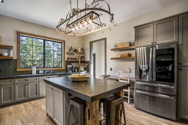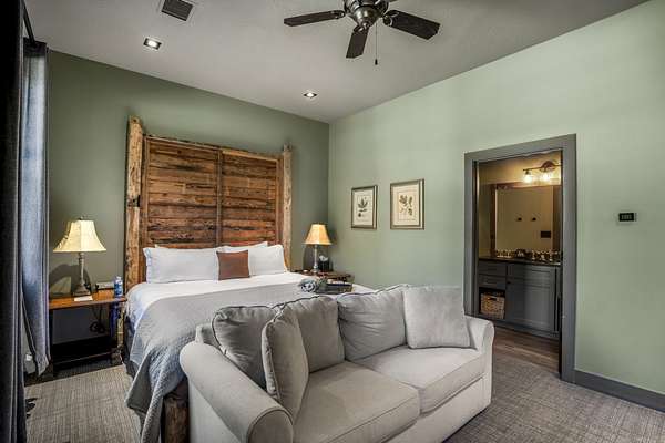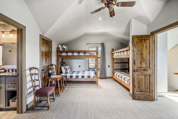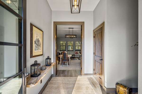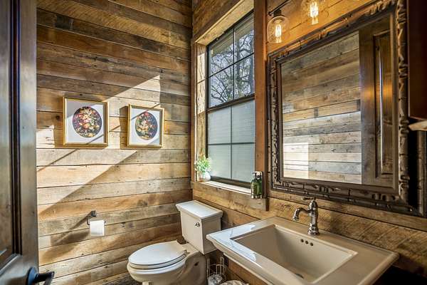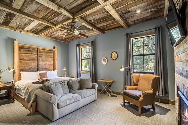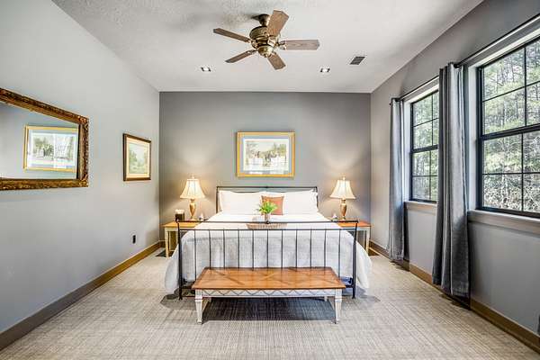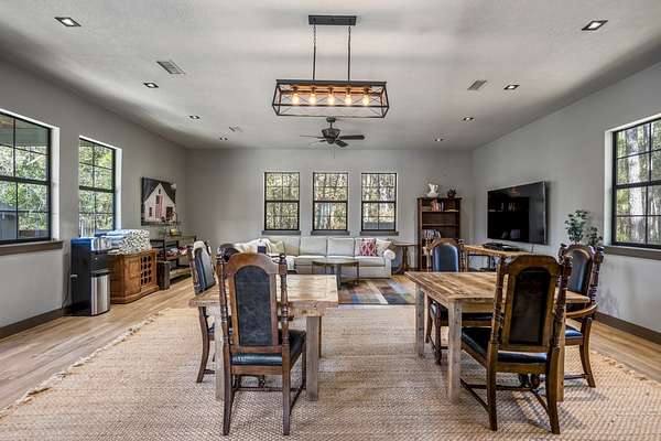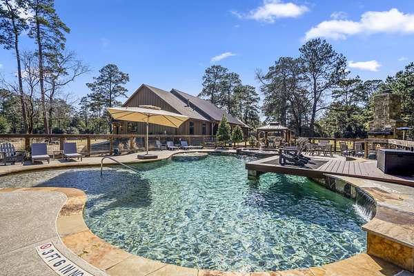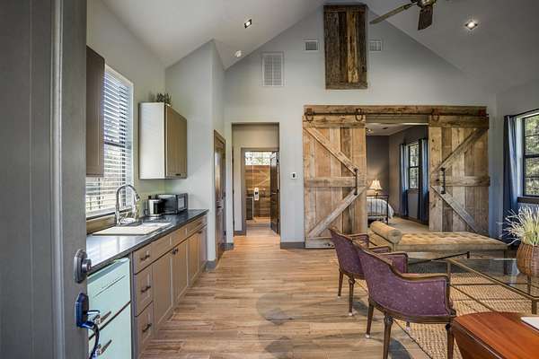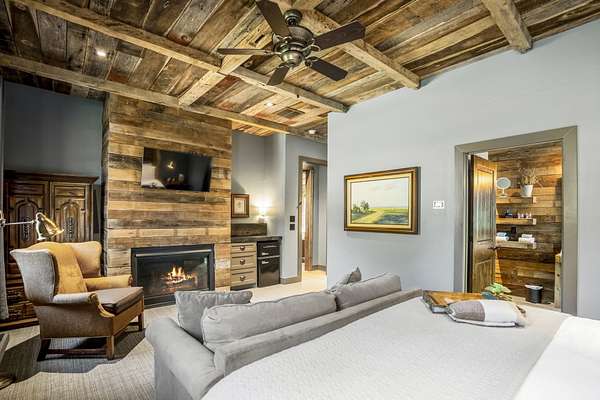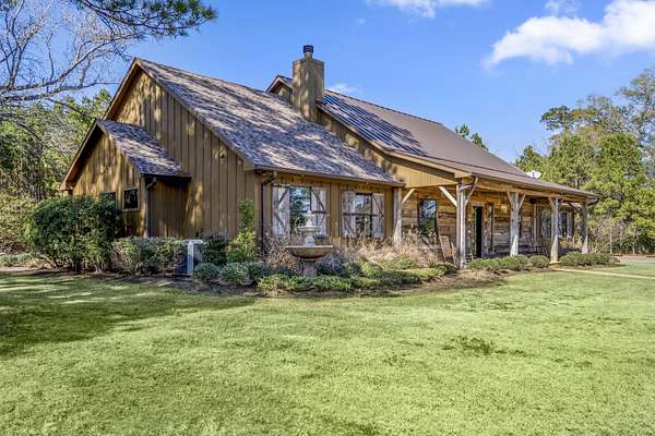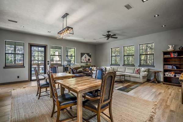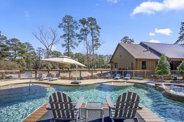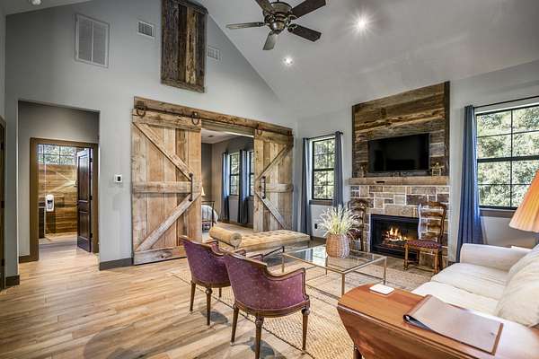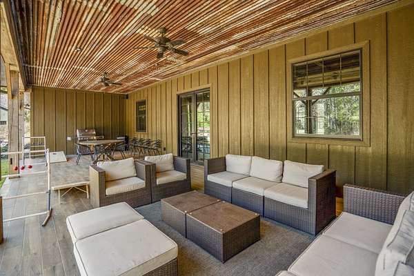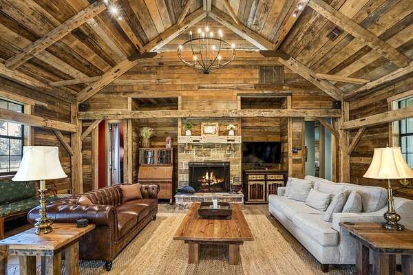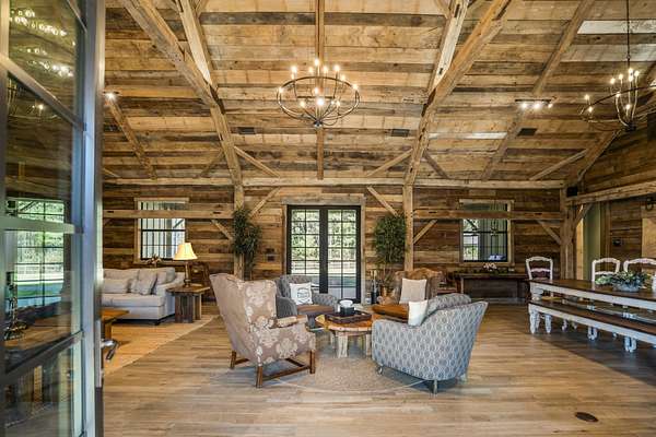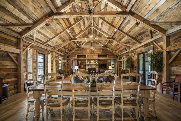 Pine Hill Lodge was thoughtfully reconstructed from an early-1900s Indiana barn, carefully reclaimed after nearly a century and transformed into a refined retreat that honors its history while offering modern comfort. The original barn now serves as the main living area, featuring three bedrooms, three and a half baths, and a spacious kitchen seamlessly integrated into the structure. Hand-hewn beams, cozy fireplaces, and distinctive details are found throughout. The back porch overlooks peaceful wooded views and leads to a private lagoon-style pool with a dock, hot tub, and outdoor lounge with a fireplace. Across the pool, the bunkhouse offers a large downstairs gathering space, an upstairs bunk room, and a full bath. A separate mother-in-law suite includes a living area, kitchenette, and full bath. In total, the estate offers five bedrooms, four full baths, two powder rooms, and over 4,600 square feet of air-conditioned living space--truly one of a kind!