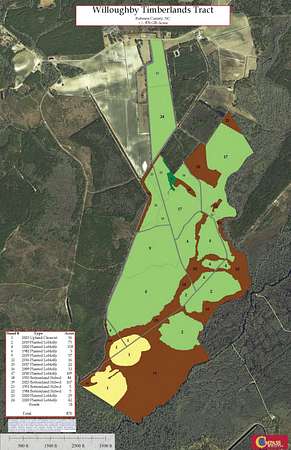 Willoughby Timberlands, a sprawling +/- 870-acre timberland investment property, is a rare gem located just 10 miles southeast of Lumberton, North Carolina. Nestled along Willoughby Road, this well-managed property boasts an extensive internal road network that provides logging and recreational access.