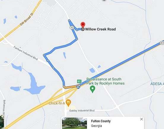 BESIDE 445 Willow Creek Road, Fairburn, Ga. 30213, & the cross street is E. Campbellton Street.
