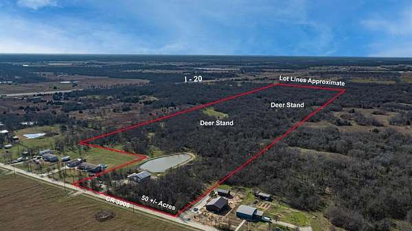 Est $4,657/mo+- 50 acres in Van Zandt County! No Restrictions. This property provides a mix of peace and excitement. Ag Exempt. for hunting enthusiasts, there are custom hunting blinds strategically placed to observe the abundant wildlife. located on a quiet county road the property offers a secluded feel while still being close to amenities and highway 20.
