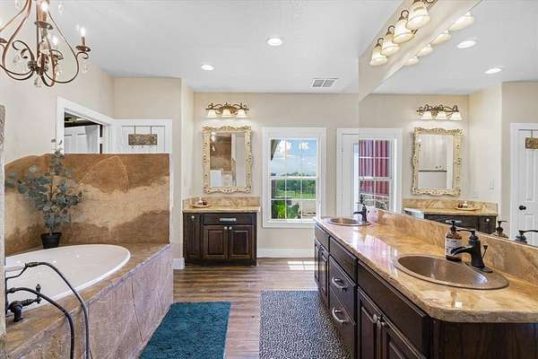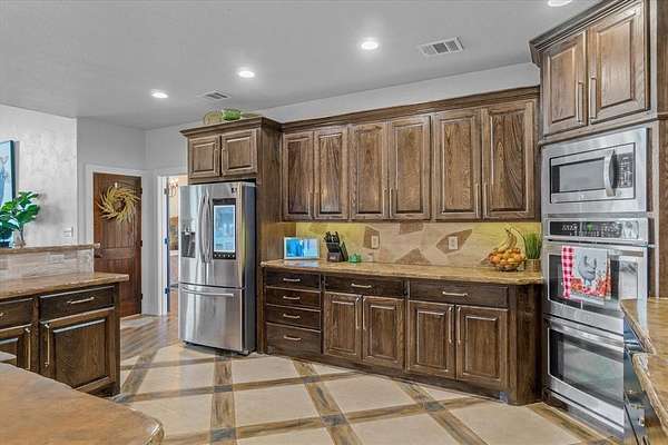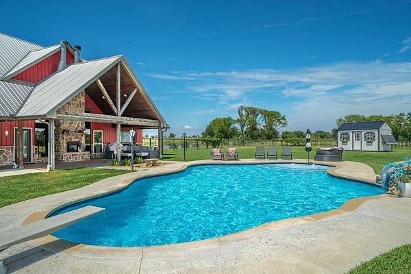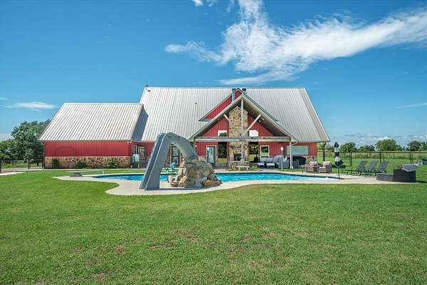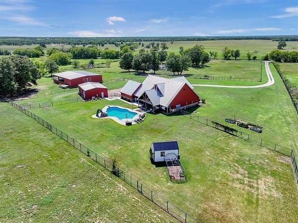 Located on sprawling acreage in the highly sought-after Wills Point ISD and conveniently close to Highway 20, this custom-built 5-bedroom estate offers luxury living in a peaceful country setting. Designed with exceptional attention to detail, the home features high-end limestone countertops, custom flooring, elegant fixtures, stainless steel appliances, and charming farmhouse accents throughout. Step outside to your private backyard oasis—complete with a sparkling pool and slide, perfect for entertaining or cooling off on hot Texas days. Enjoy year-round comfort in the spacious game room equipped with both heat and AC. The home also boasts walk-in closets in every bedroom and an abundance of natural light. For equestrian lovers, the property includes a fully stocked tank and a horse barn designed with space for an indoor round pen. A perfect blend of rustic charm and modern amenities—this one-of-a-kind ranch retreat has it all!