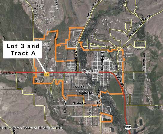 These two commercially-zoned lots provide excellent visibility along the west end of Pine Street. An average of 3,000-plus vehicles travel Pine Street on a daily basis (WYDOT). This listing combines two adjacent lots, one with 1.73 acres and one with 1.65 acres. The west side of Pinedale has exceptional development potential with the amount of vacant land remaining here. To the north, construction began on a new housing development in 2024. Multiple hotels and Pinedale's only RV Park are within easy walking distance. Pinedale's new recreational complex, including baseball and soccer fields, is immediately to the west. This is an excellent location for your future business! These lots are also being offered separately, please inquire for more information. Taxes are estimated.