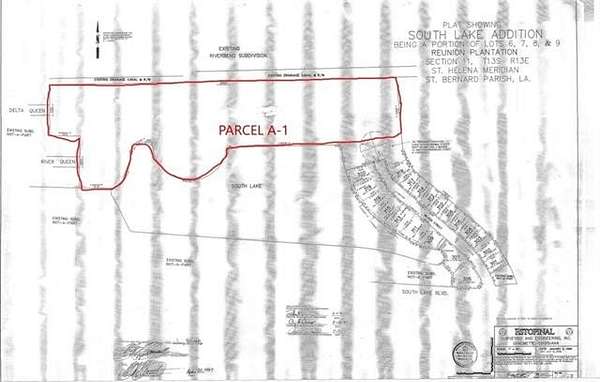 REAR PTN,LOTS 6,7,8 & 9, REUNION PLANT. COMM. APPROX 1915' FROM ST. BERNARD HWY. X VARIOUS DEPTHS TO ITS LINE TO BE FURTHER DEV. INTO SOUTH LAKE ESTATES