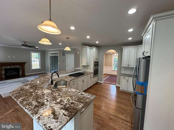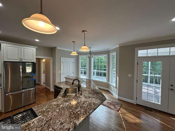 - Breakfast Area, Chair Railings, Crown Moldings, Dining Area, Open Floor Plan, Primary Bath(s), Upgraded Countertops, Wainscotting, Wood Floors
