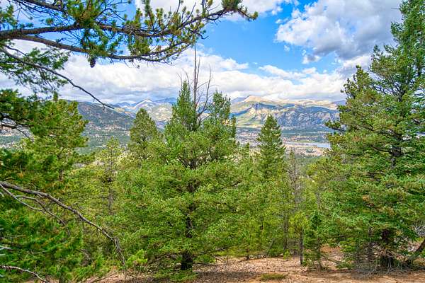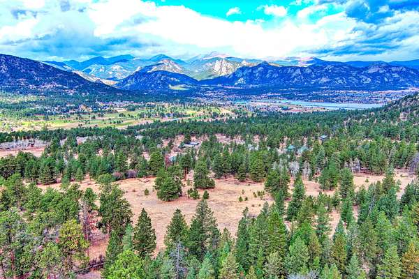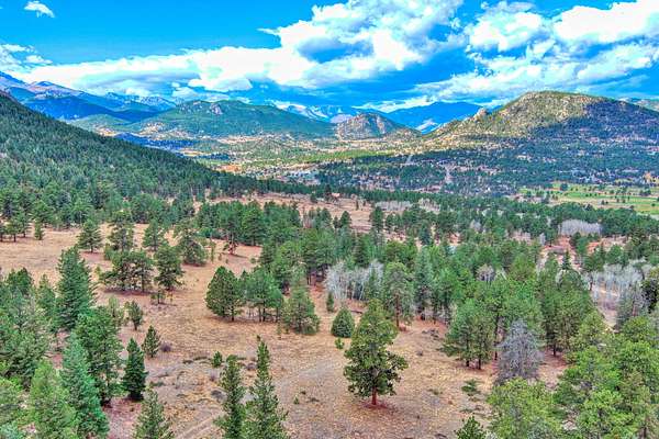 Lovingly held by the same family for decades, this once-in-a-lifetime opportunity allows you to create a legacy estate to be cherished for generations to come. Bordering expansive government-owned lands on two sides and a large ranch property on another, this parcel offers unique protection from future development, preserving its tranquility for decades. Rising from approximately 8,040 to 8,640 feet in elevation, the property sits perfectly positioned just a mile east of the Estes Park Golf Course and a mere 10-minute drive from downtown Estes Park, which rests at about 7,600 feet. This elevation difference creates breathtaking 270-degree panoramic views, extending from the majestic Longs Peak and the peaks of Rocky Mountain National Park to the west and northwest, to the Mummy Range and the neighboring peaks to the north and northeast. As the day fades, the twinkling lights of Estes Valley below create an enchanting nighttime scene.