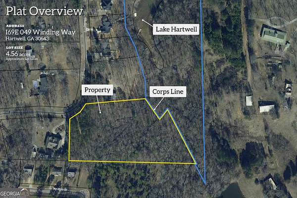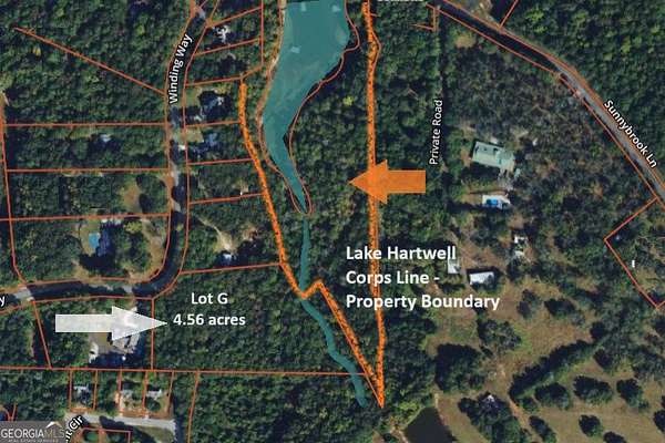 Welcome to your private wooded retreat on Lake Hartwell! This expansive 4.5-acre lot offers exclusive lake access with 550 feet of Corps of Engineers frontage. A (sometimes dry) creek bed winds through the property, feeding into Lake Hartwell. The entire property is a natural habitat for abundant wildlife. Enjoy the peace and tranquility of this secluded haven, ideal for nature enthusiasts and those seeking a quiet escape. The property is protected with minimal building restrictions, no mobile or modular homes, at least 1200 sf, no concrete block, no tents or campers for more than 2 weeks a year. No chain link fence and 10ft setback from lot lines, allowing for creative freedom in your construction plans, while ensuring it remains a single, undivided parcel. This unique opportunity to own a slice of nature's paradise awaits you. The property is not dockable, yet easy direct access for canoe, kayak and more! Lake Hartwell is visible through sparce trees and building near the corps-line - near that jagged property line - would offer great seasonal views and year-round with minimal clearing, based on corps guidelines. Soil test complete at multiple locations and available. Lot lines are well-marked. Driveway/path extends full upper length of property. Numerous deer trails, property is quite open of underbrush and easily walkable. Survey available. Map to 414 Winding Way, Hartwell, GA 30643. This driveway is just before Lot G and property borders their wooden fence. Lot: Wood Fence along Top/Short West border, Barbed Wire Fence along Long/Far South border, Corps-Line entire Bottom/East (jagged) border, property markers along North border from road to corps-line. Numerous pink markers indicate soil site work.