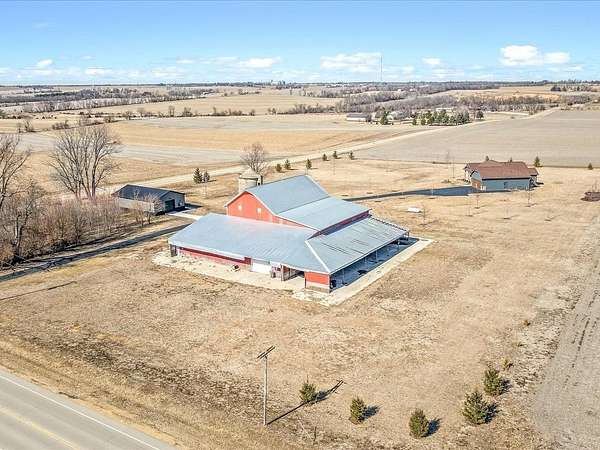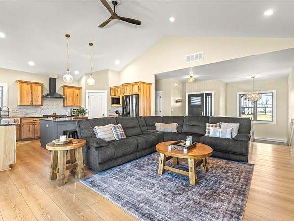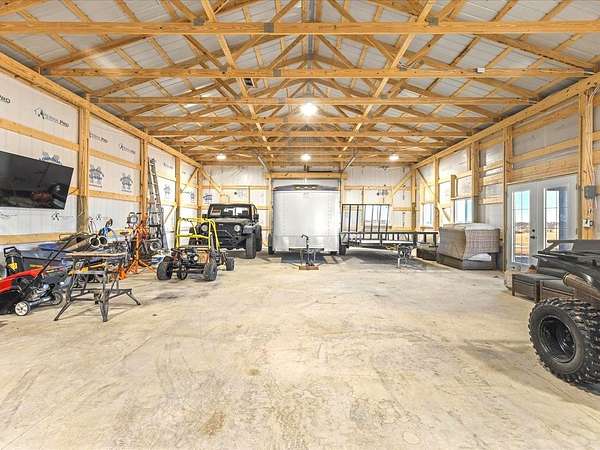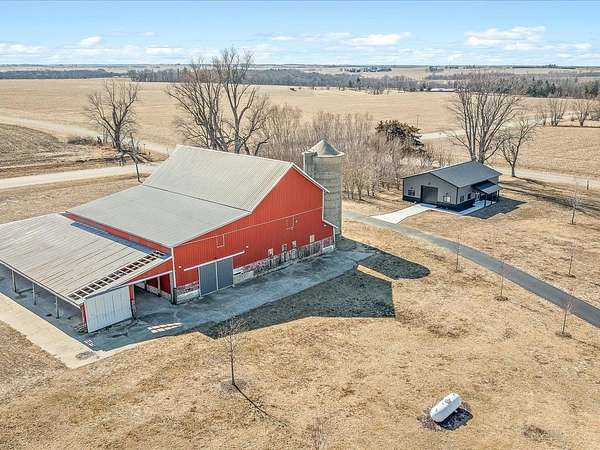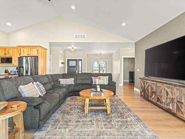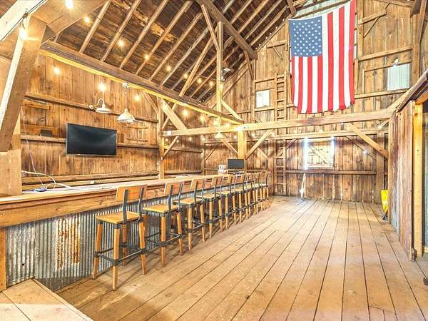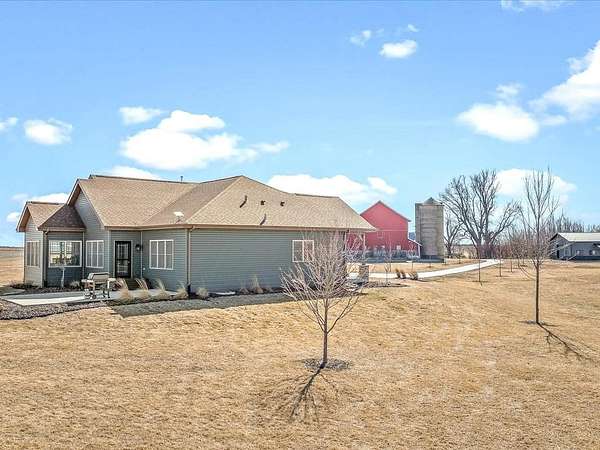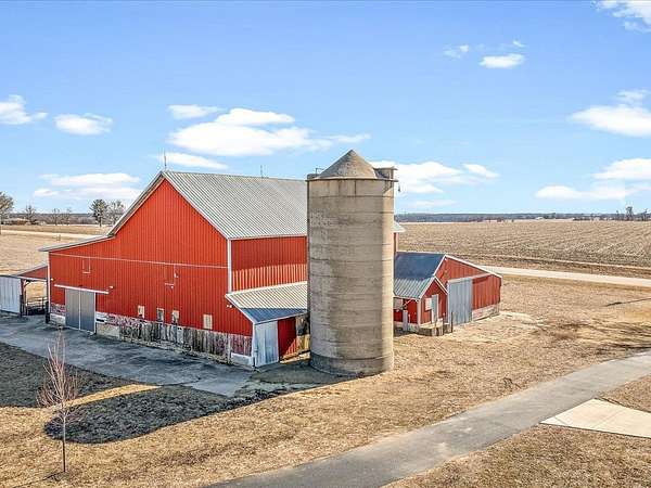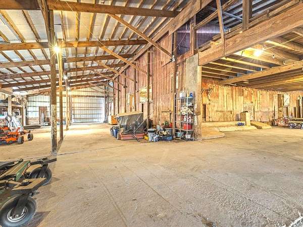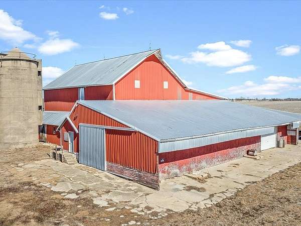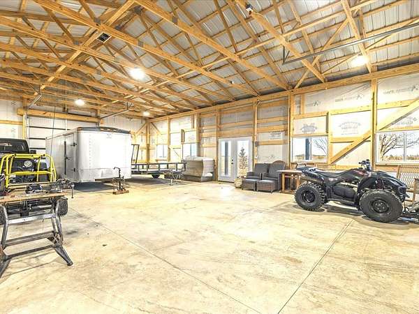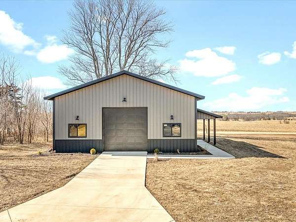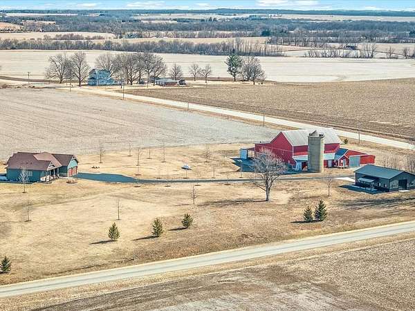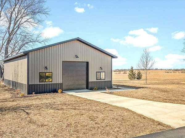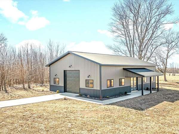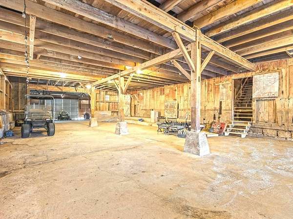 WELCOME TO FAIRVIEW FARM! This unique property has it all! Gorgeous newer ranch home (built in 2020) on over 7 acres with large outbuilding built in 2025 w/concrete floor (36x45) with 12' doors on each end and a separate classic red barn. Modern home has open floor plan, white trimwork, beautiful LVP flooring throughout, Kitchen features large granite island, tile backsplash, soft-close drawers, hickory cabinets, walk-in pantry, farmhouse sink, graphite appliances, gas range. Sunlight floods the dining room (feels like a sunroom) and overlooks acreage. Primary suite features free-standing tub, walk-in shower, double bowl sinks and ENORMOUS walk-in closet with windows. Separate first floor laundry room located close to primary suite. Lower level completely finished since current owners purchased w/ 3rd bedroom (egress and closet), 3rd bathroom, family room, speaker system, and kitchenette area with refrigerator, bar adding almost another "house" in the lower level! LP tank is not owned. Radon mitigation system already in place. Two outbuilding- one is a 36 x 45 pole barn with concrete floor perfect for storing RVs, boats, vehicles, etc. The second is a classic red barn with more space than you could imagine! Upstairs of barn is has been turned in entertainment area with flat screen TVs, pool table, bar to accommodate 10 people. This is a MUST SEE property.