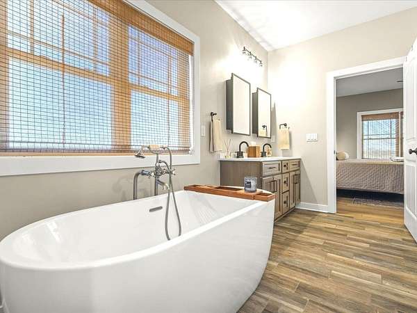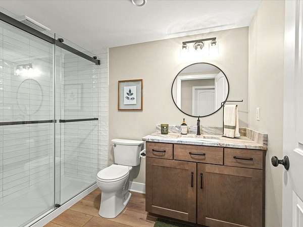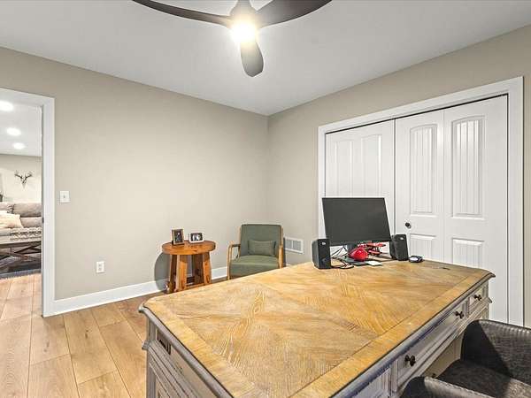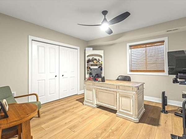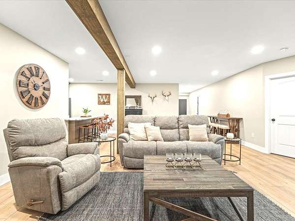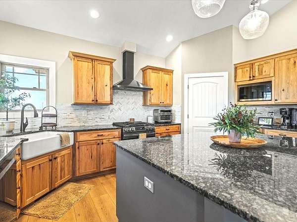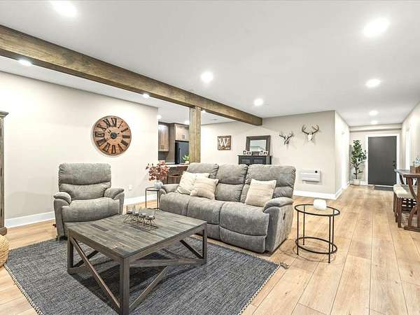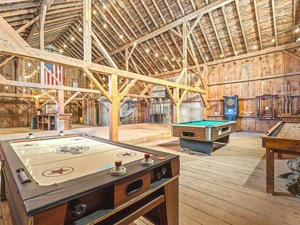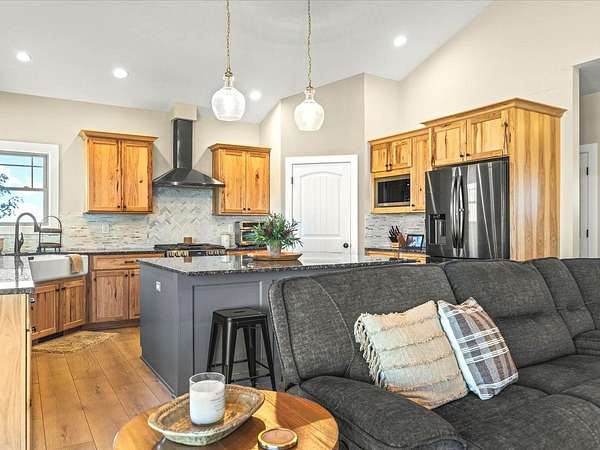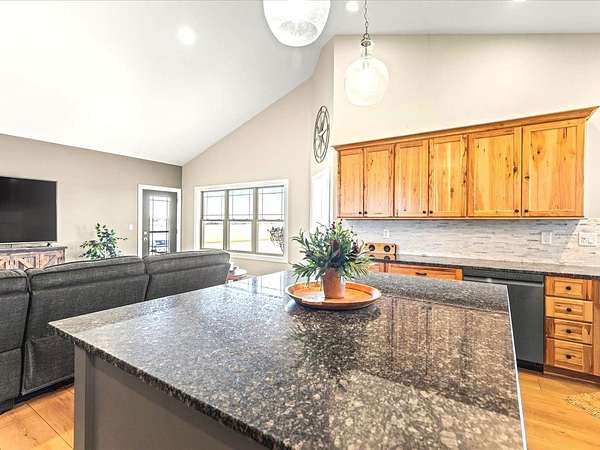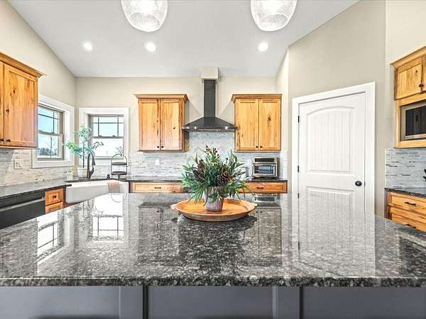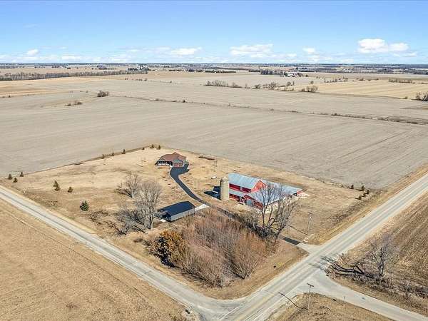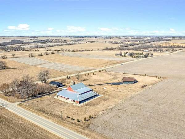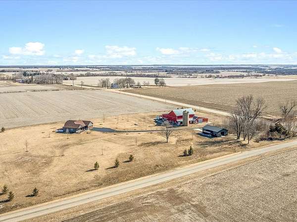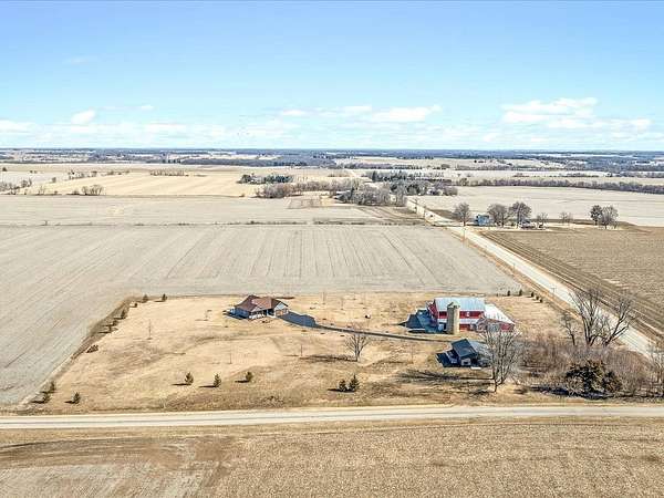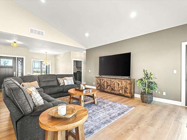WELCOME TO FAIRVIEW FARM! This unique property has it all! Gorgeous newer ranch home (built in 2020) on over 7 acres with large outbuilding built in 2025 w/concrete floor (36x45) with 12' doors on each end and a separate classic red barn. Modern home has open floor plan, white trimwork, beautiful LVP flooring throughout, Kitchen features large granite island, tile backsplash, soft-close drawers, hickory cabinets, walk-in pantry, farmhouse sink, graphite appliances, gas range. Sunlight floods the dining room (feels like a sunroom) and overlooks acreage. Primary suite features free-standing tub, walk-in shower, double bowl sinks and ENORMOUS walk-in closet with windows. Separate first floor laundry room located close to primary suite. Lower level completely finished since current owners purchased w/ 3rd bedroom (egress and closet), 3rd bathroom, family room, speaker system, and kitchenette area with refrigerator, bar adding almost another "house" in the lower level! LP tank is not owned. Radon mitigation system already in place. Two outbuilding- one is a 36 x 45 pole barn with concrete floor perfect for storing RVs, boats, vehicles, etc. The second is a classic red barn with more space than you could imagine! Upstairs of barn is has been turned in entertainment area with flat screen TVs, pool table, bar to accommodate 10 people. This is a MUST SEE property.