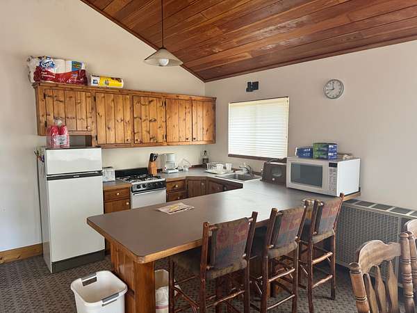 An on-site propane generator turns the cabin into a fully functioning home with a sizeable kitchen, living and dining room as well as a full bath and a bunkroom that comfortably sleeps six. Evenings that culminate on the front porch or around the fire pit leave guests and owners both anticipating their next adventure